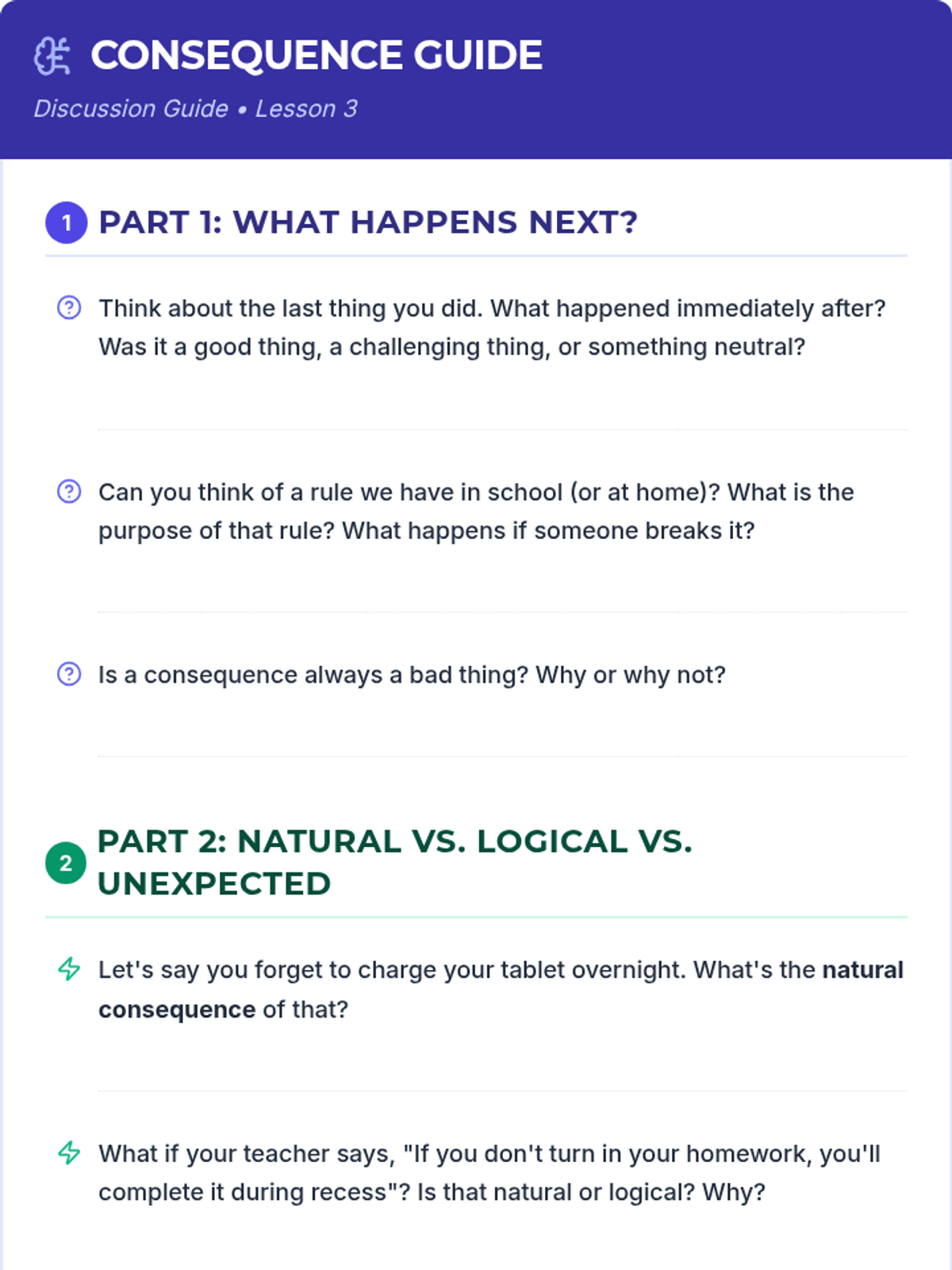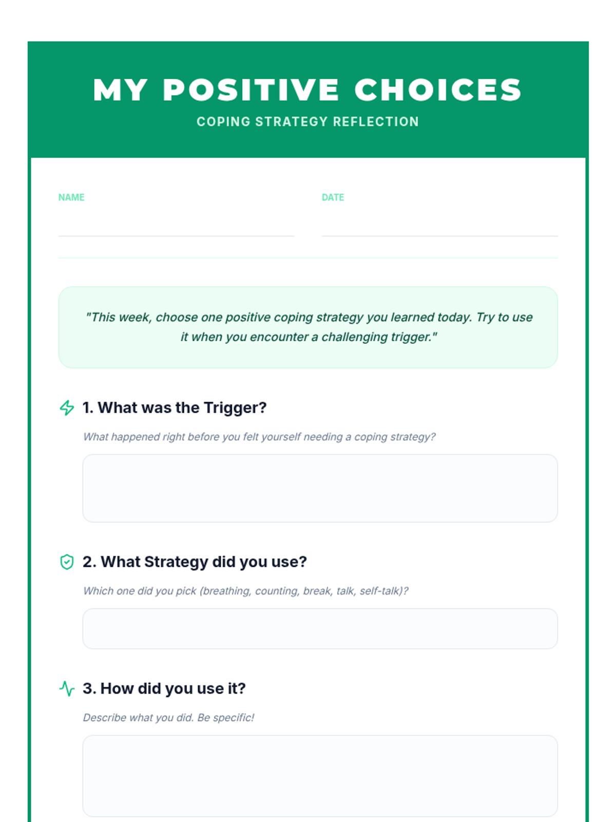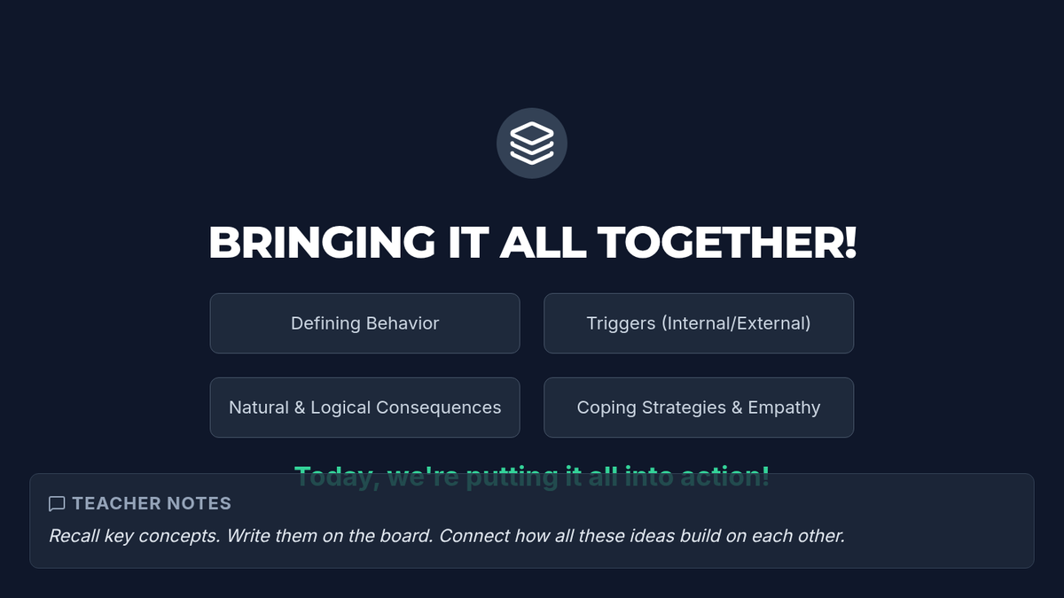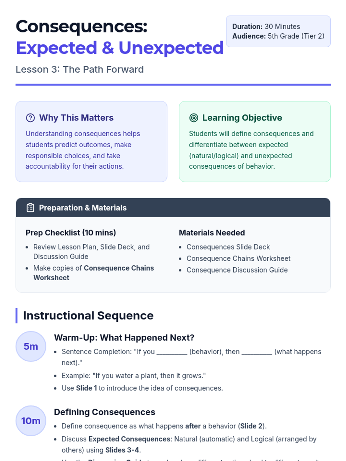 A 6-session Tier 2 small group intervention for 5th graders designed to build self-awareness, identify behavioral triggers, understand consequences, and develop personal action plans for positive behavior.