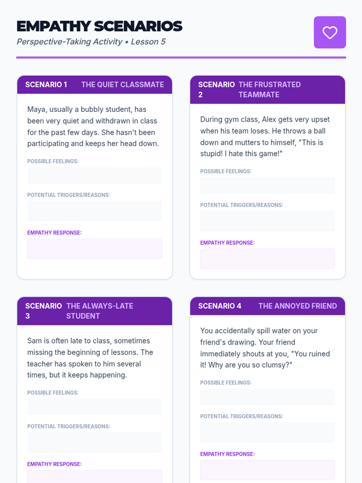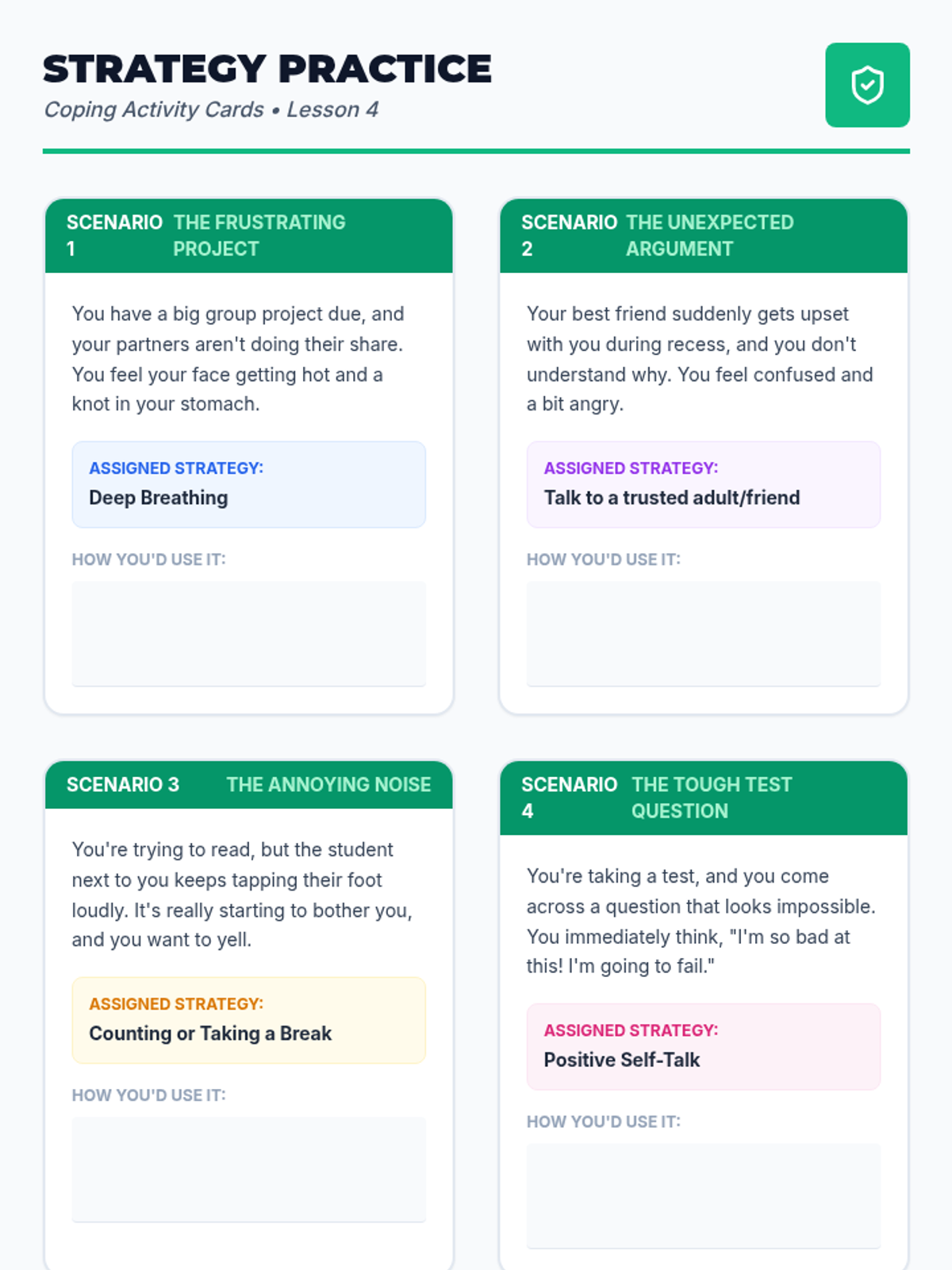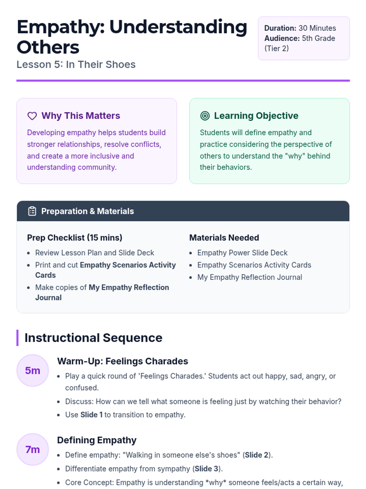 A series of lessons designed to develop social-emotional health, focusing on interpersonal kindness and personal coping strategies for elementary students.