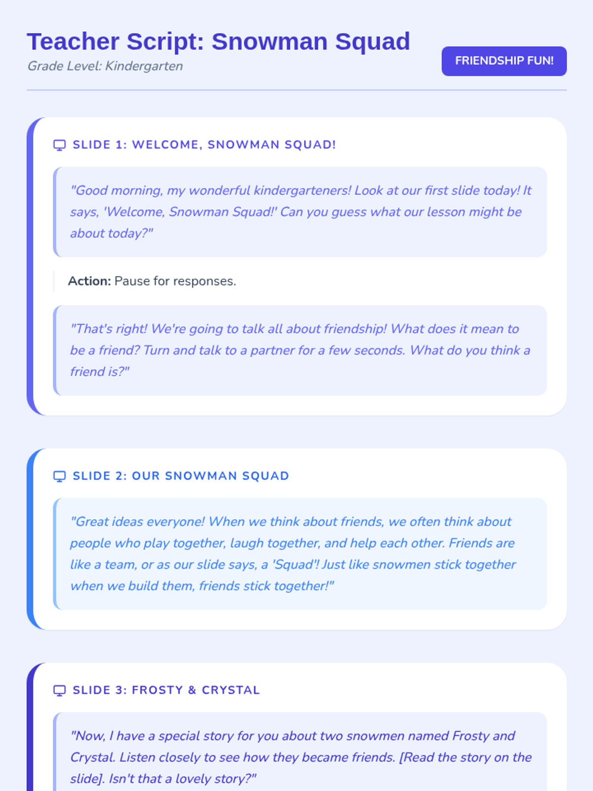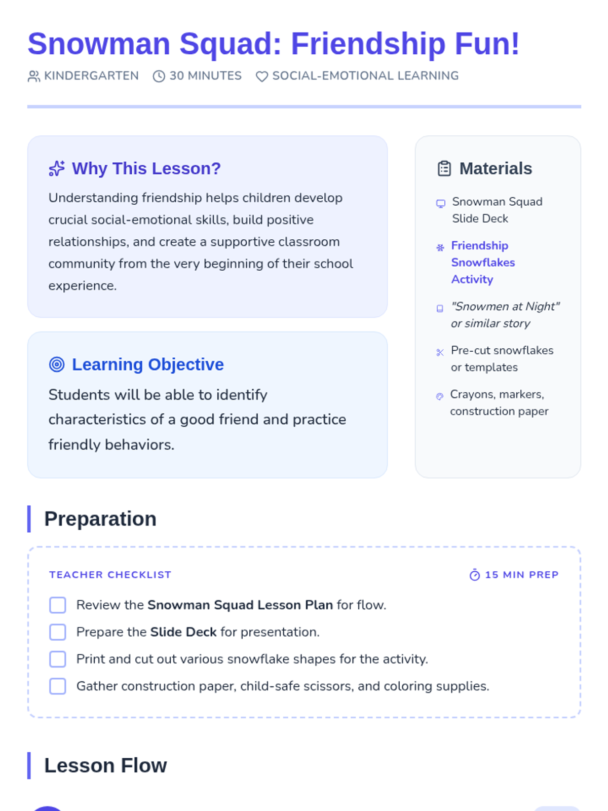 A series of winter-themed social-emotional learning lessons for early elementary students that explore the qualities of friendship, kindness, and building positive classroom communities through stories and creative activities.