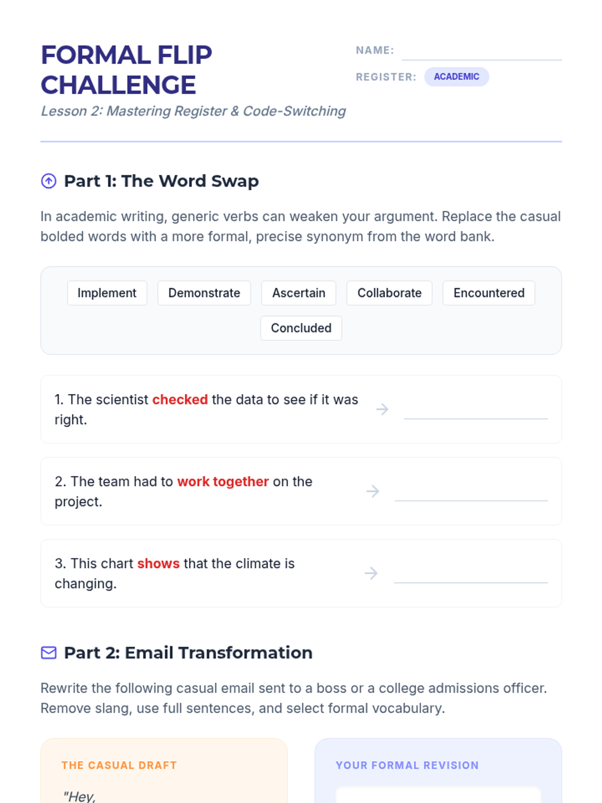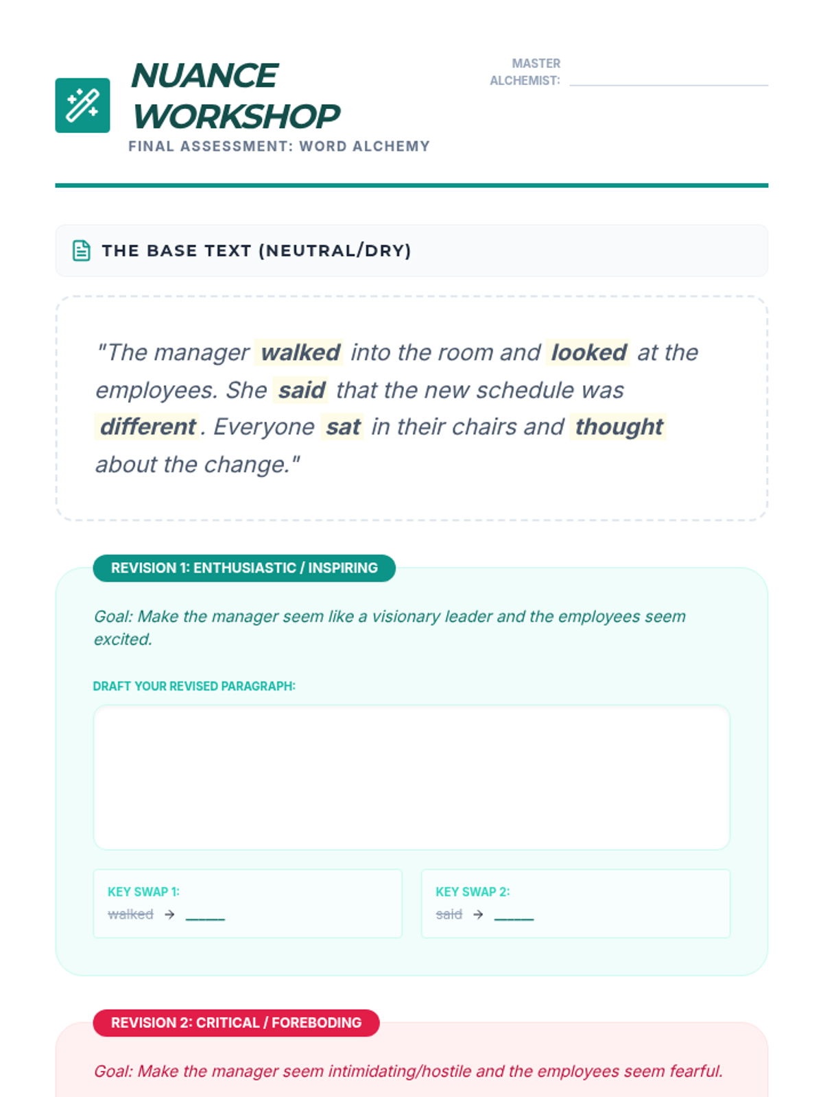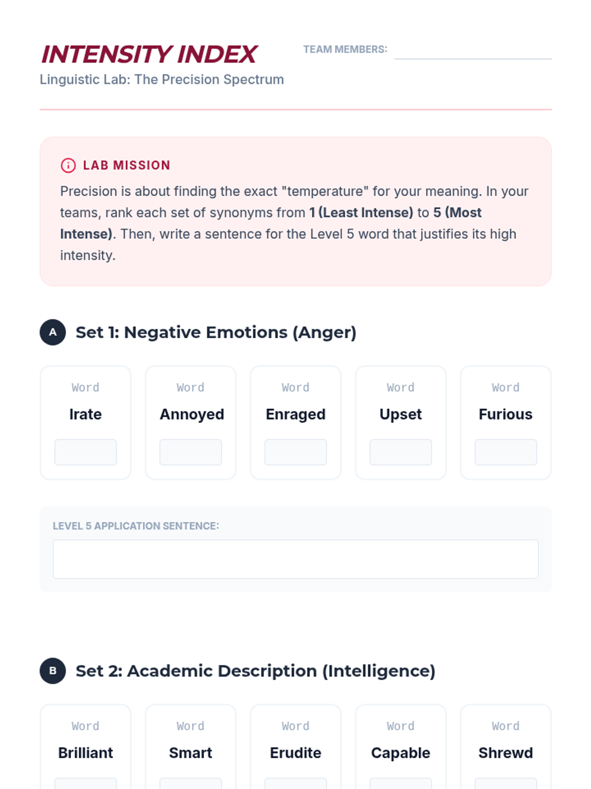 A deep dive into the nuances of English vocabulary for advanced 10th-grade students. This sequence moves beyond basic definitions to explore how connotation, register, and intensity shape tone and influence audience perception in academic and professional contexts.