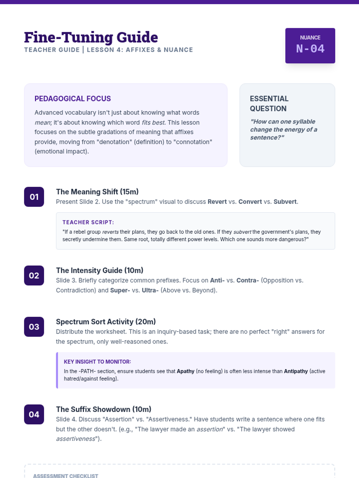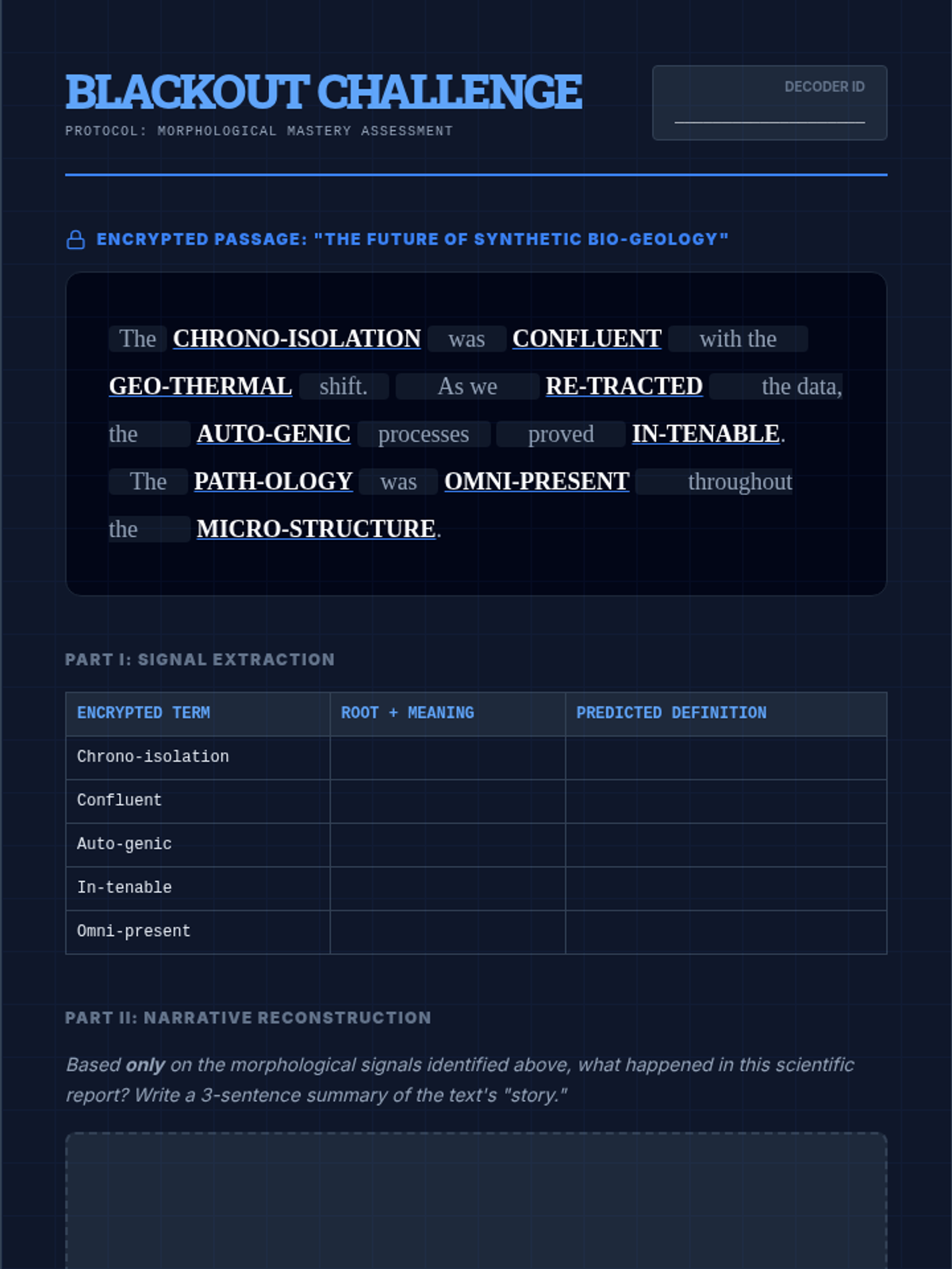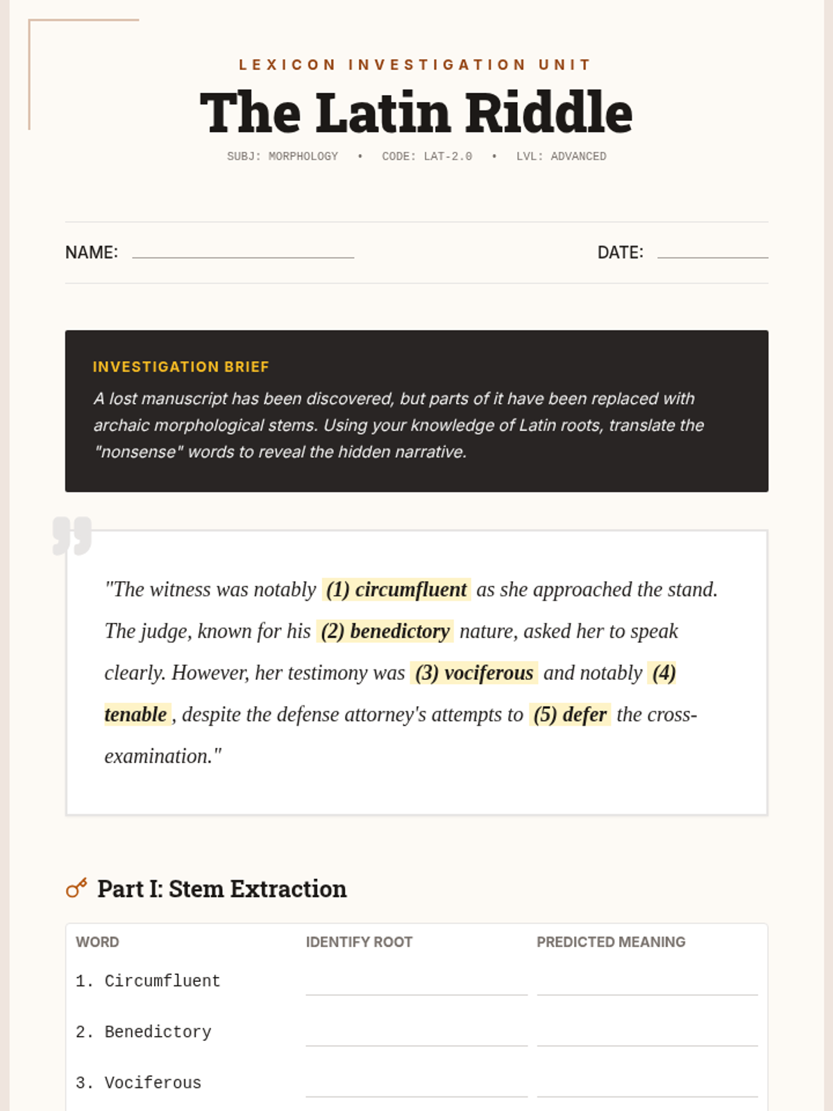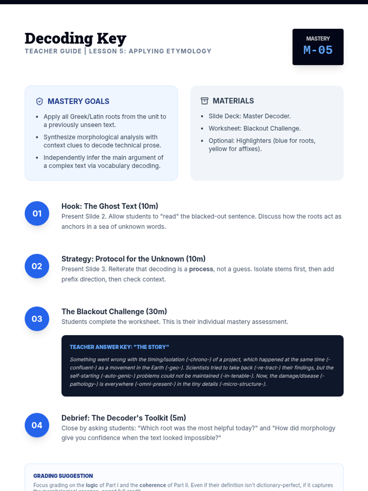 This 10th-grade advanced vocabulary sequence empowers students to decode complex academic language through the study of morphology. Students explore Greek and Latin roots, analyze the impact of affixes on word nuance, and apply their etymological knowledge to independently decipher unfamiliar scientific and academic texts.