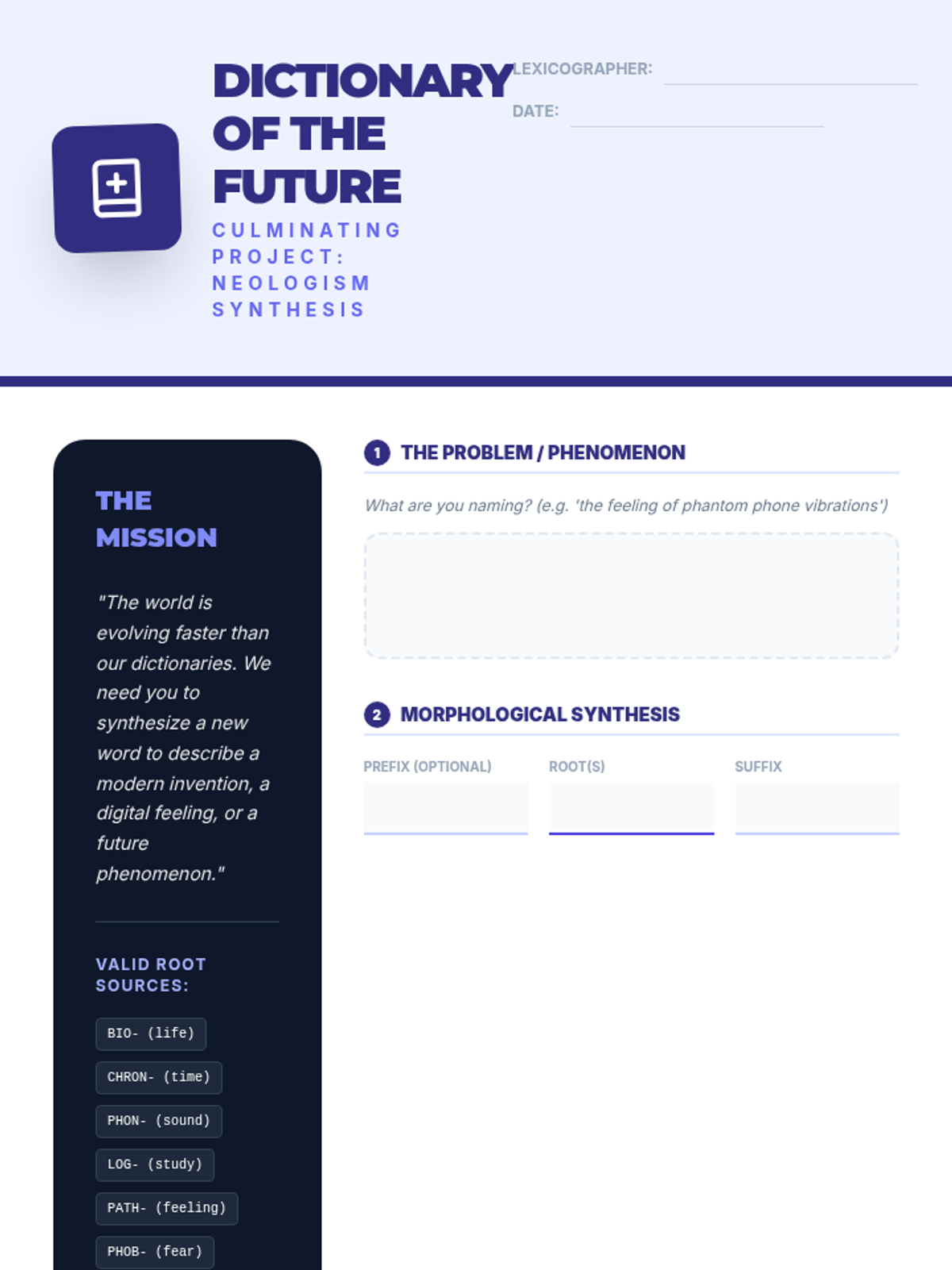 A comprehensive 6th Grade ELA unit on morphology, focusing on how prefixes, roots, and suffixes work together to create meaning and determine grammatical function. Students will progress from deconstructing words to decoding academic vocabulary and inventing their own neologisms.