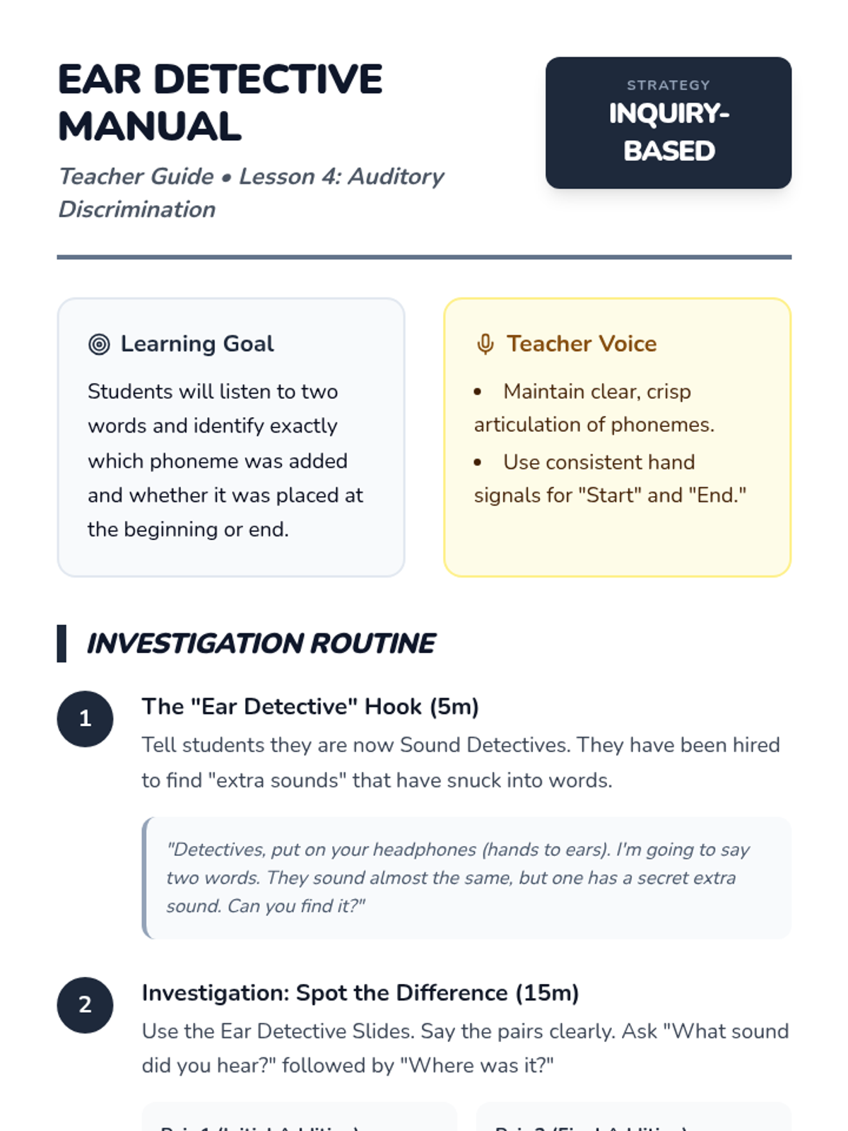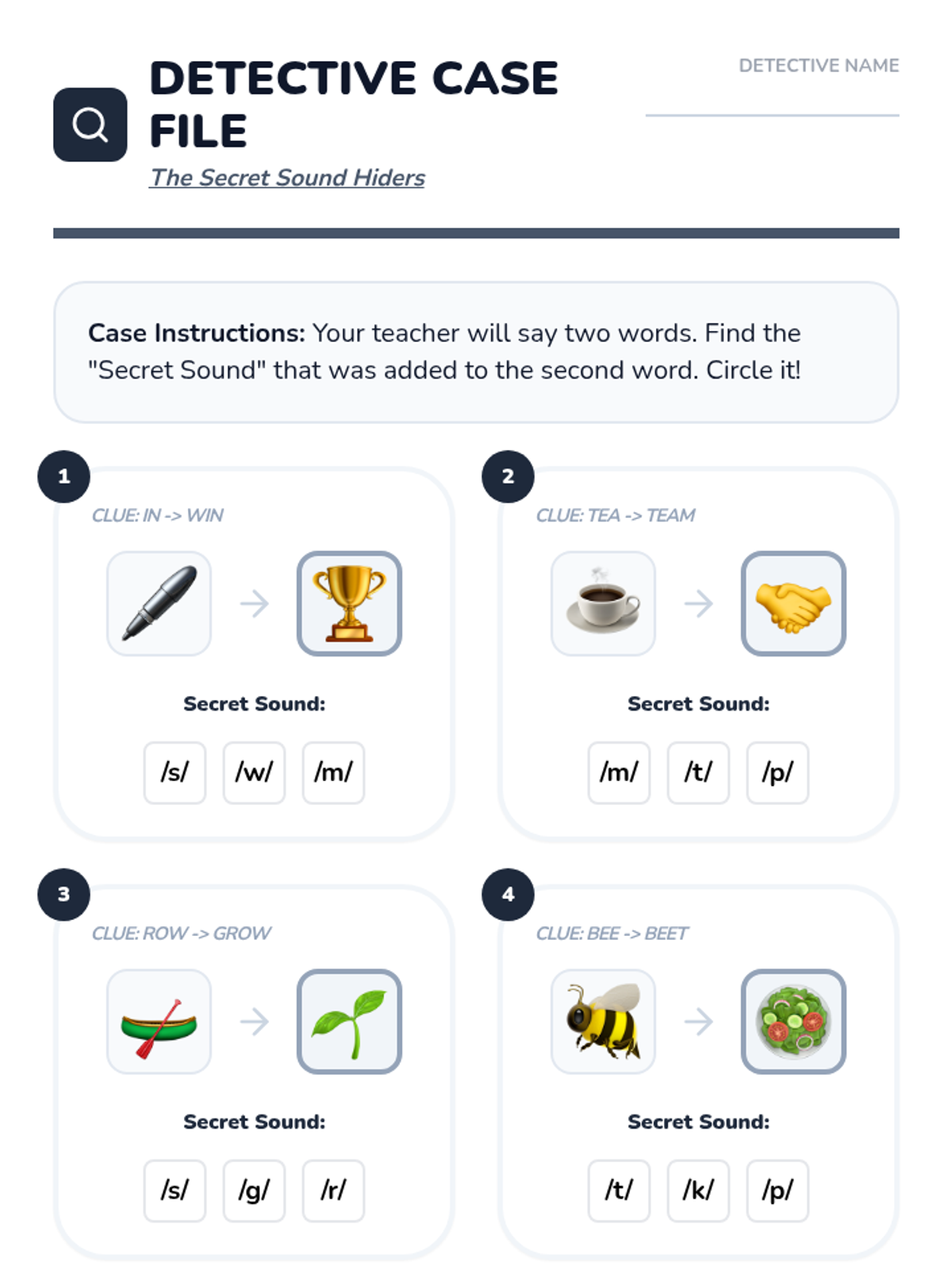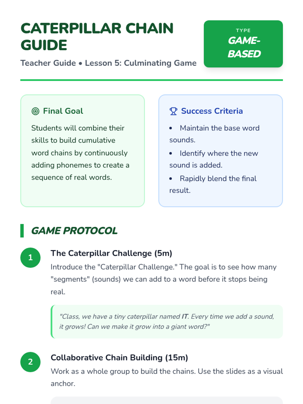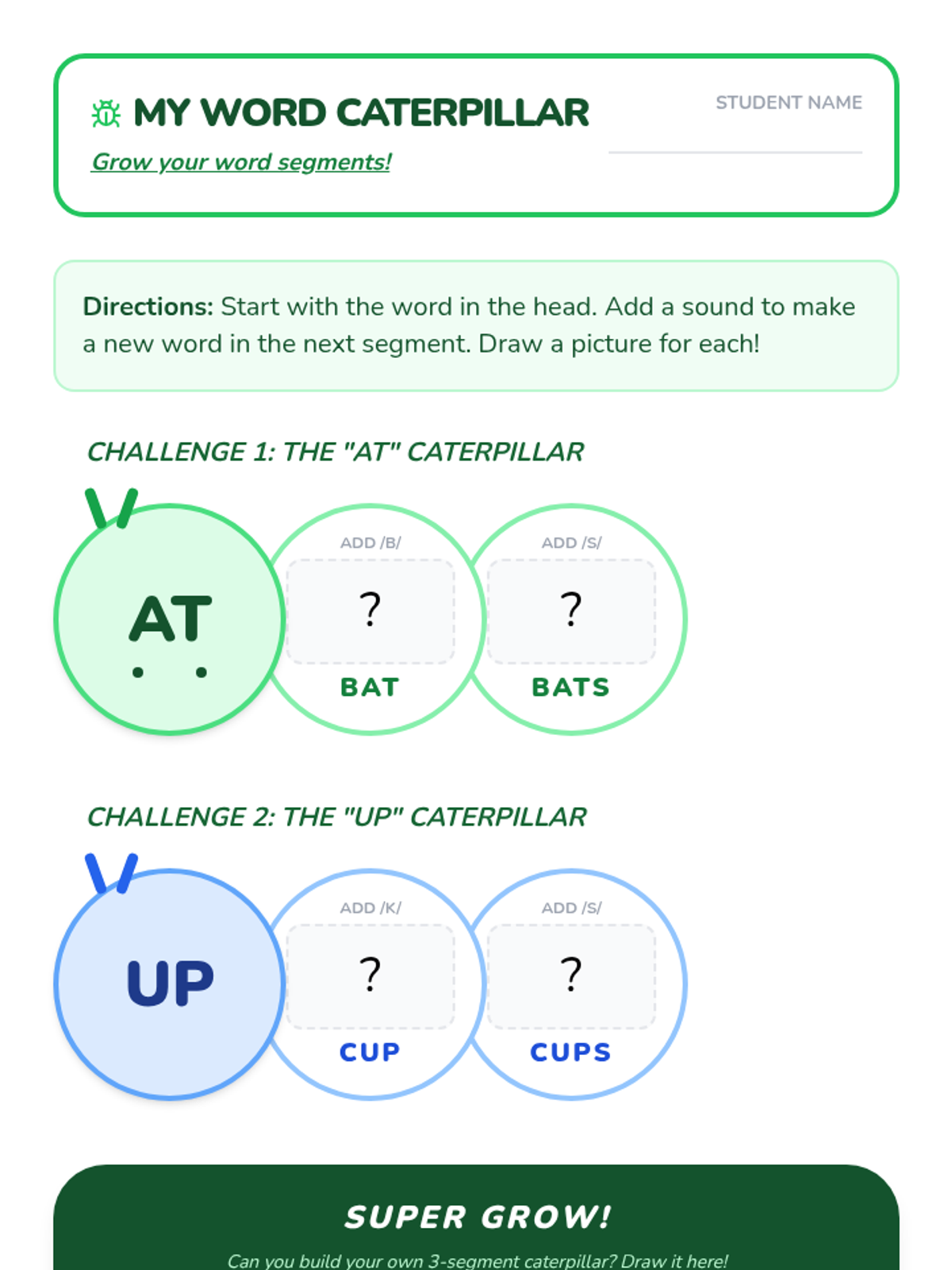 A comprehensive Kindergarten phonics sequence focusing on adding phonemes to construct new words. Students progress from adding initial sounds to rimes, to adding final sounds, and eventually building complex word chains through auditory blending and tactile manipulation.