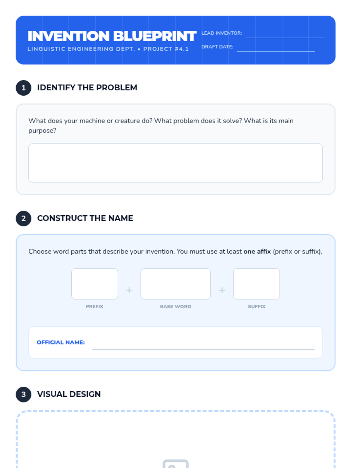 A 3rd-grade ELA sequence where students learn to decode and create multisyllabic words using prefixes and suffixes, culminating in an original neologism project.