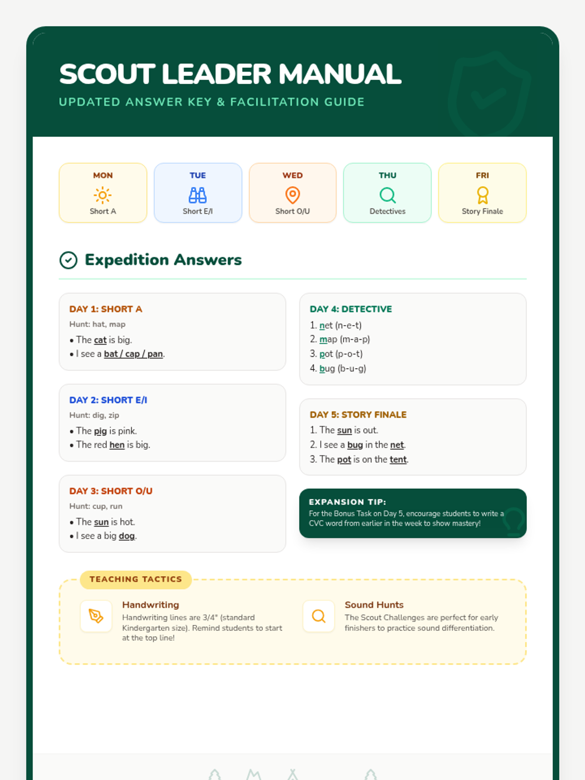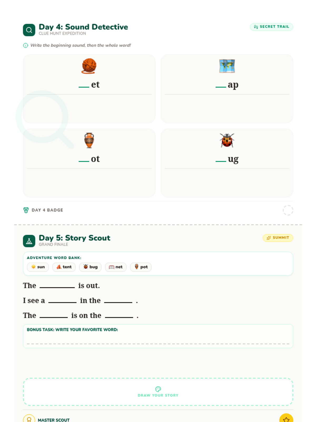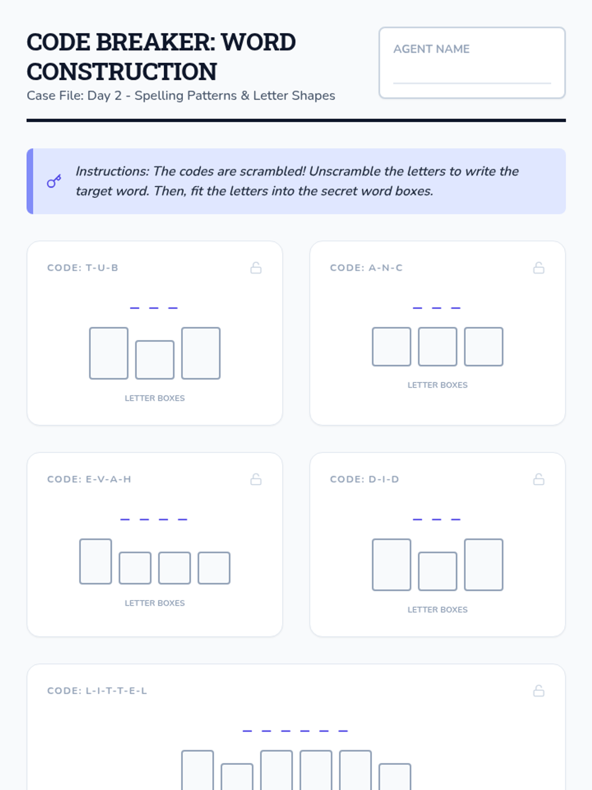 A comprehensive 5-day unit focused on mastering 7 high-frequency sight words (but, can, have, did, little, what, all) through a "Word Detective" theme. Students engage in daily investigations involving spelling, fluency, and small-group interactive games.