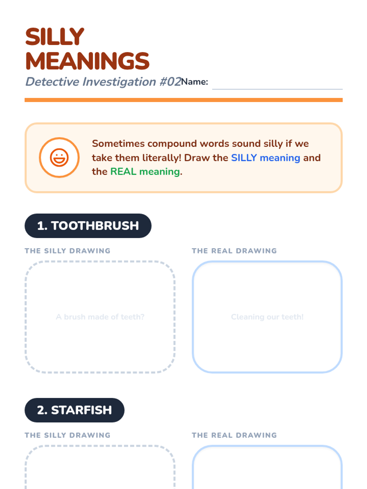 A Kindergarten ELA sequence exploring compound words through literature, dramatization, and context clues. Students investigate how two small words join together to create new meanings within stories.