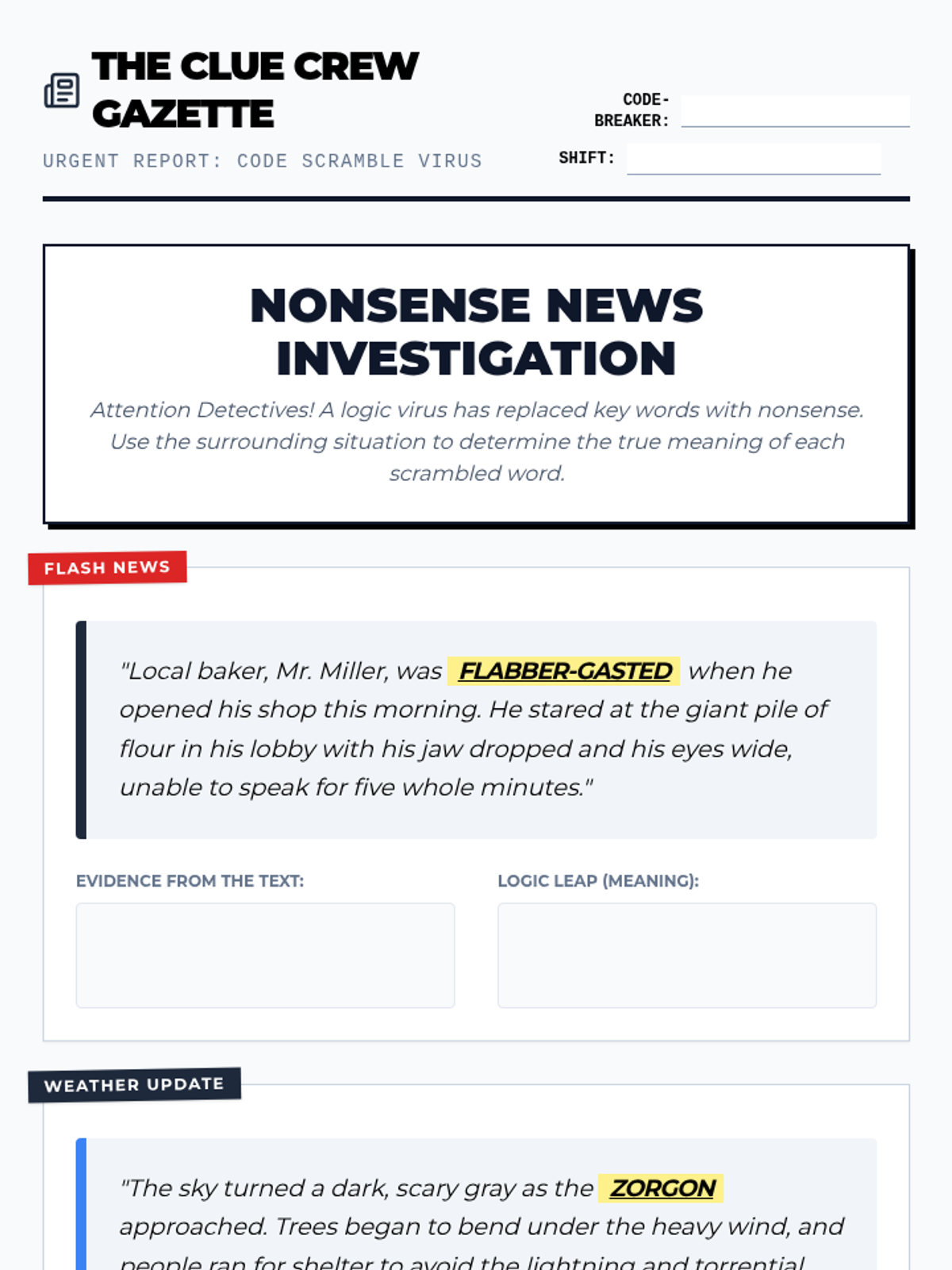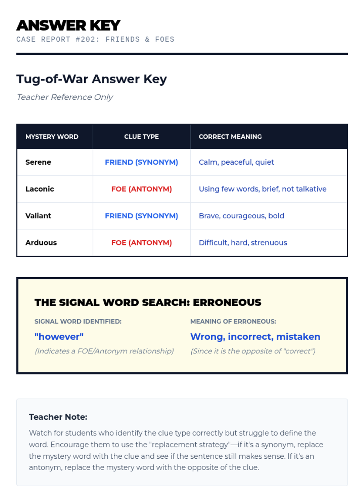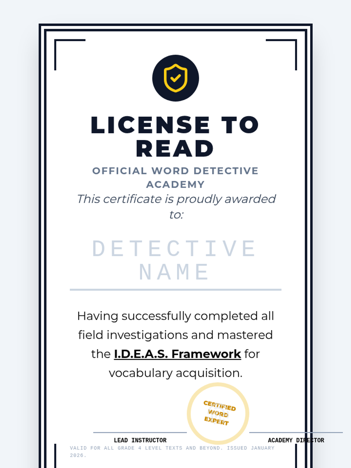 This sequence systematically builds 4th Grade student proficiency in identifying and using context clues (I.D.E.A.S.) to decipher unfamiliar vocabulary, moving from explicit definition clues to subtle inference-based logic.