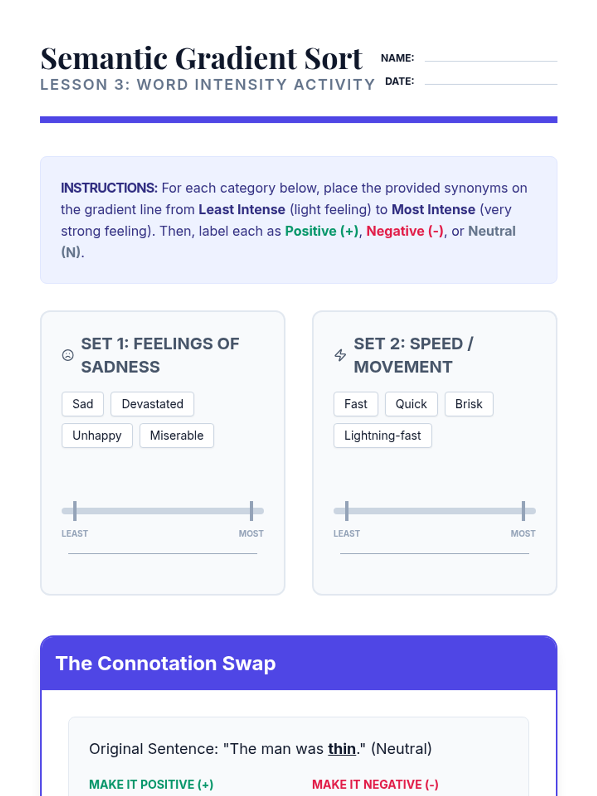 A comprehensive sequence for intermediate ELL students focusing on context clues, morphology, and connotation to build reading independence. Students learn to use the 'IDEAS' acronym, analyze word parts, and evaluate word intensity.