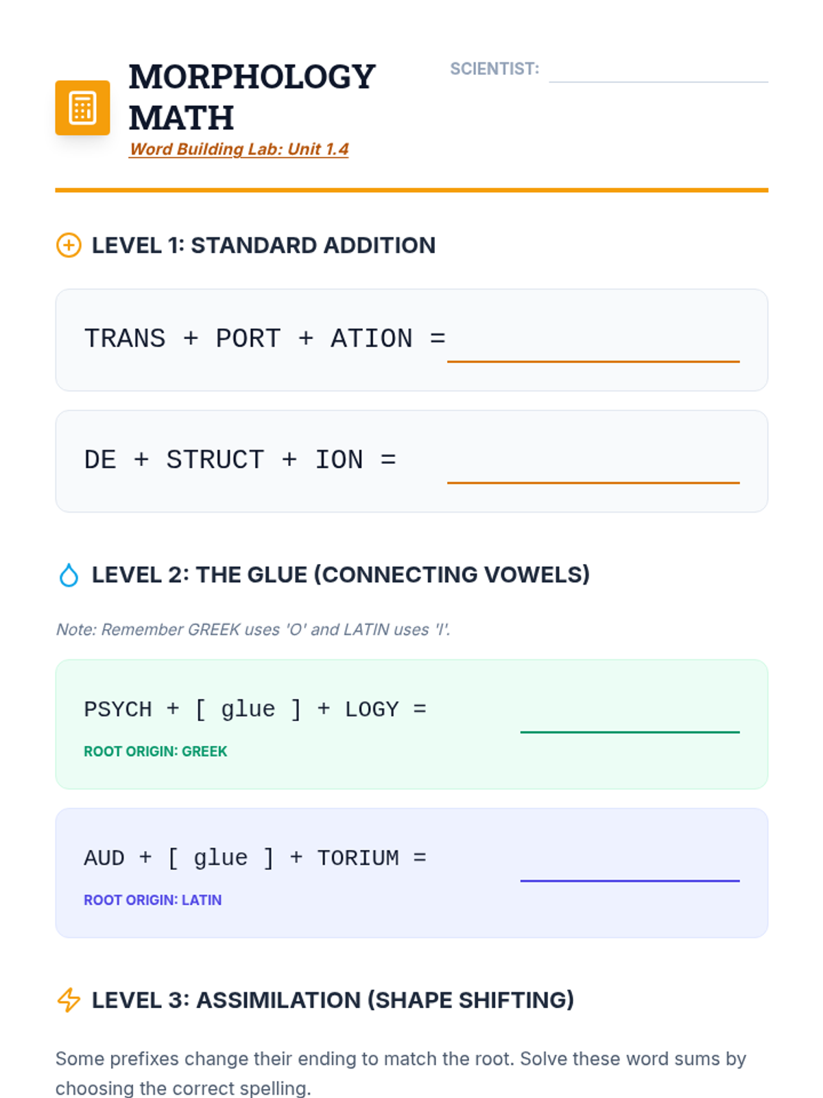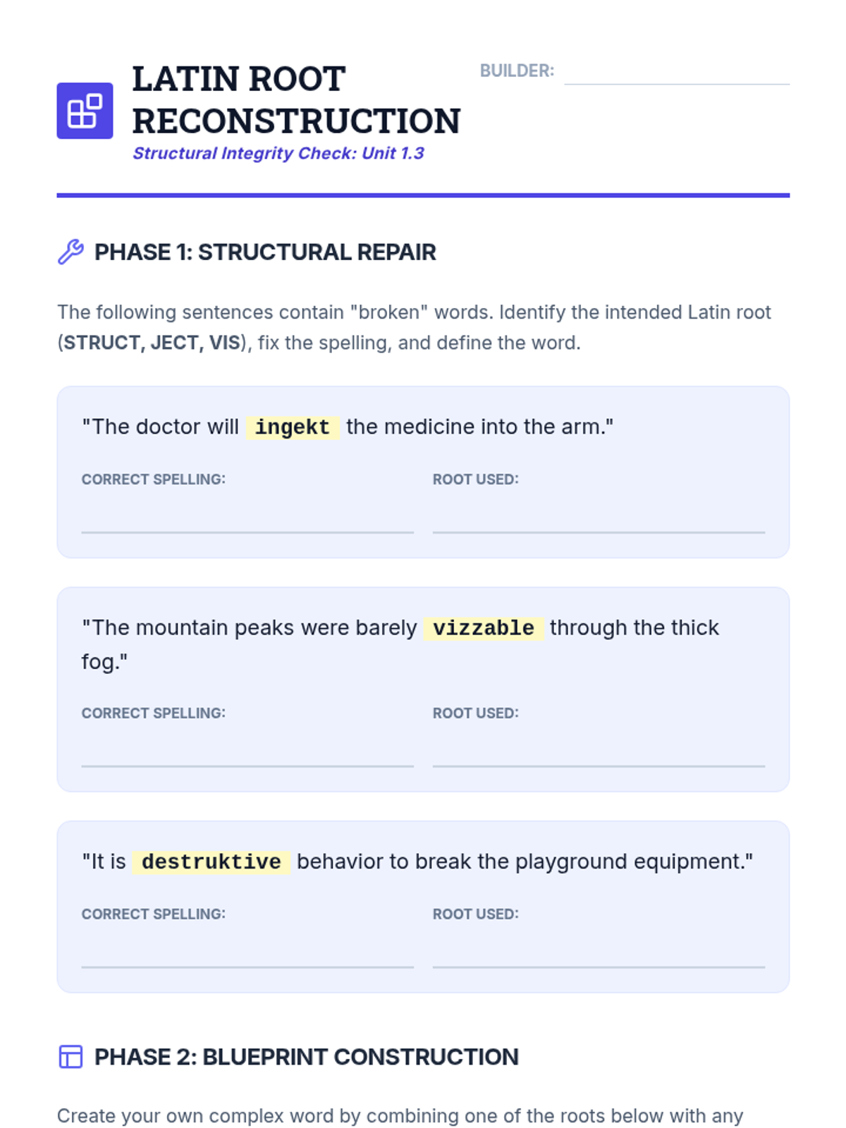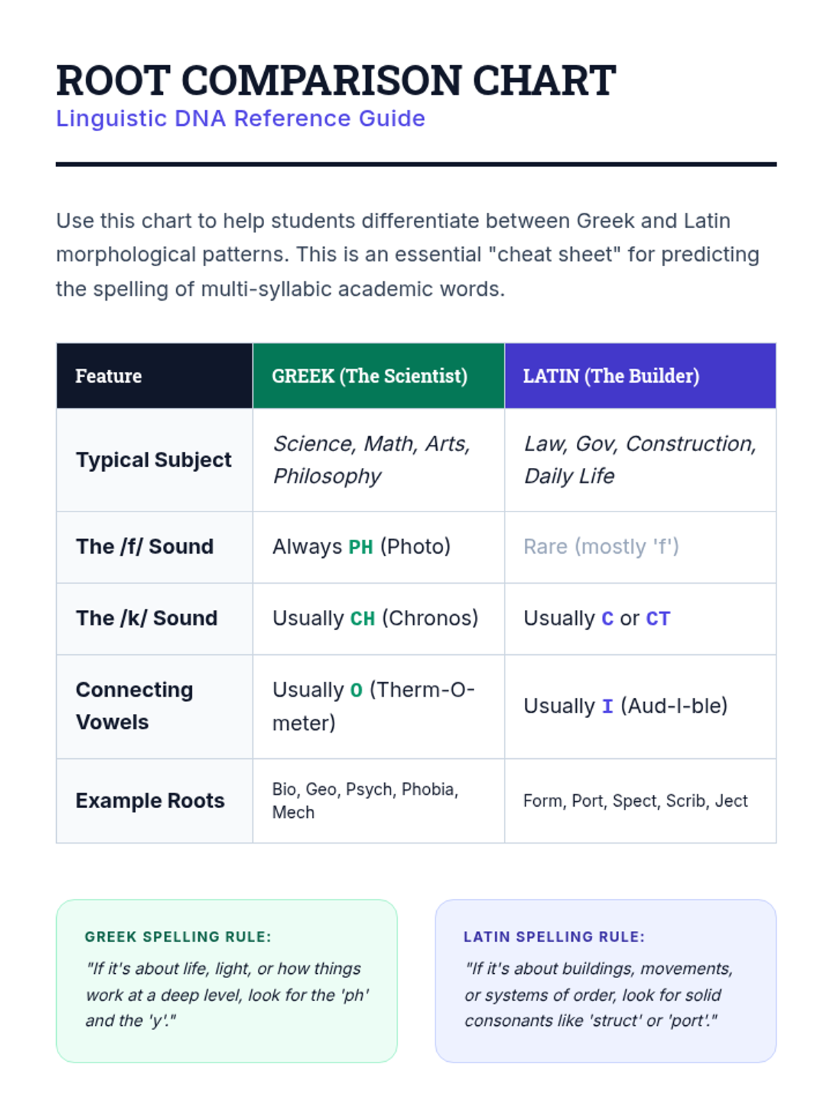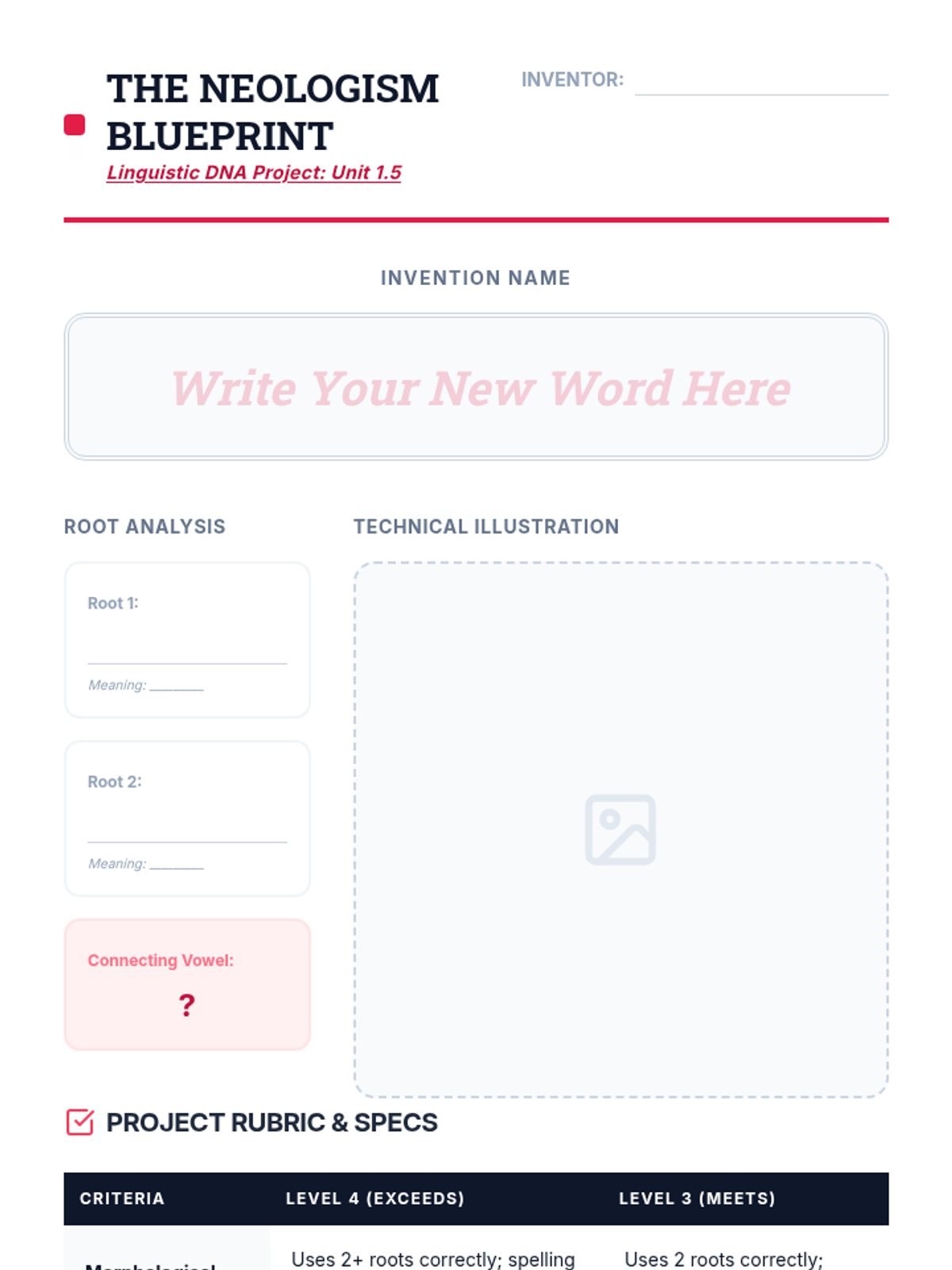 A 7th-grade ELA unit exploring the morphological 'DNA' of the English language. Students analyze Greek and Latin roots to improve spelling accuracy, vocabulary acquisition, and the ability to construct complex words.