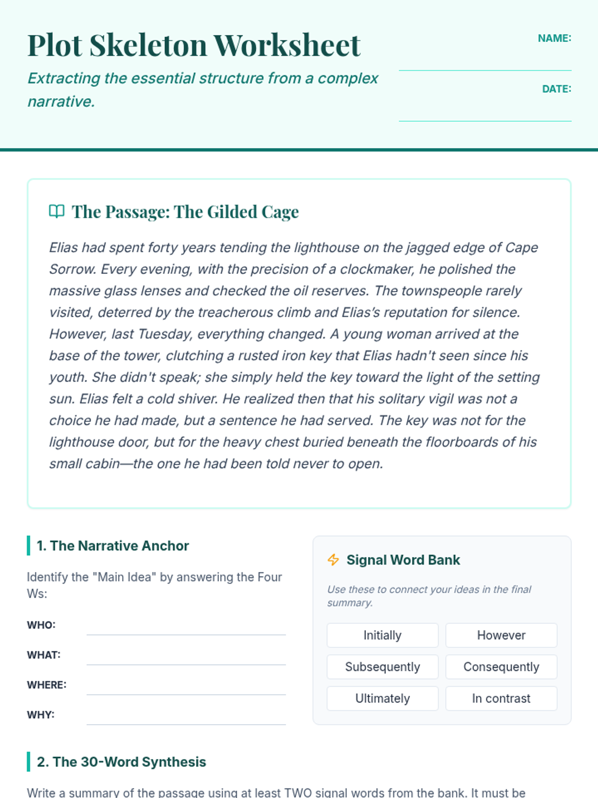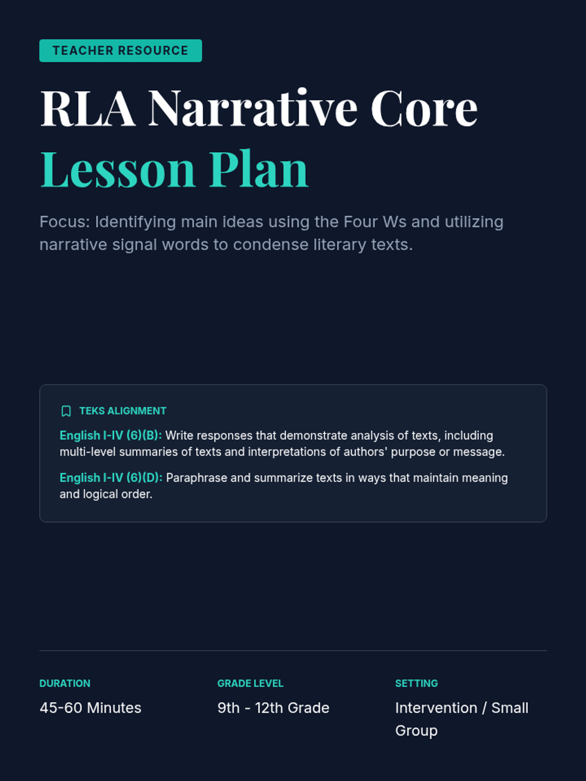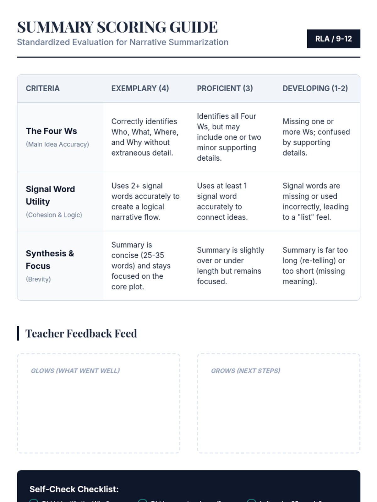 A comprehensive intervention program designed for high school students to master summarization across RLA and Social Studies. The sequence focuses on identifying main ideas, using signal words, and distinguishing between key and supporting details through discipline-specific texts.