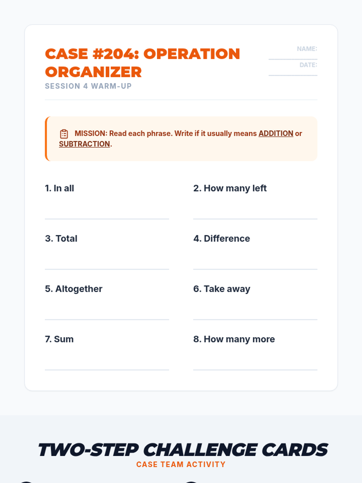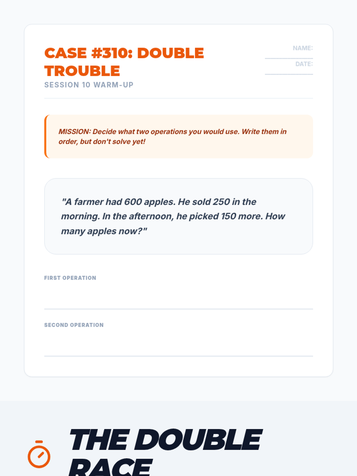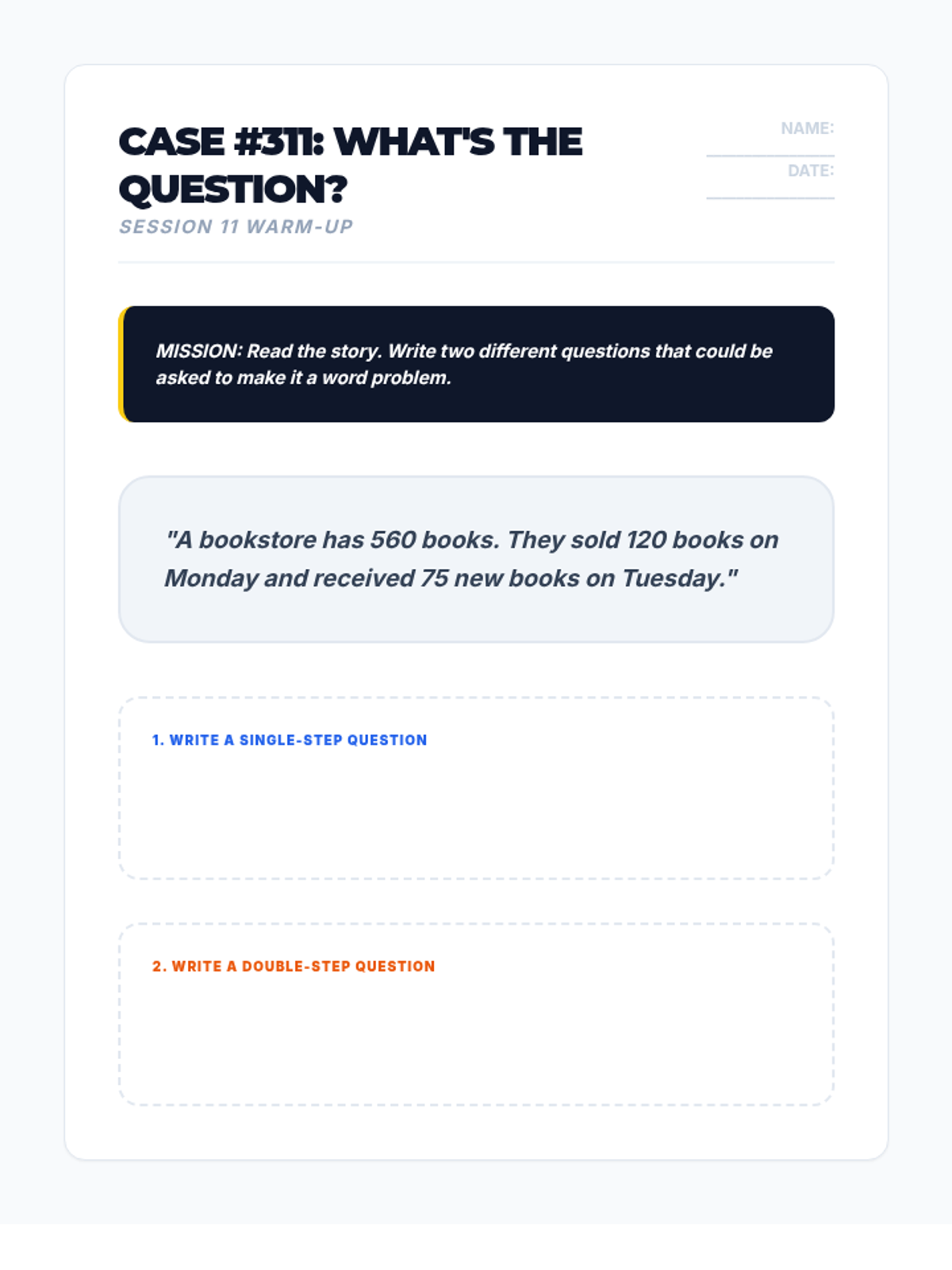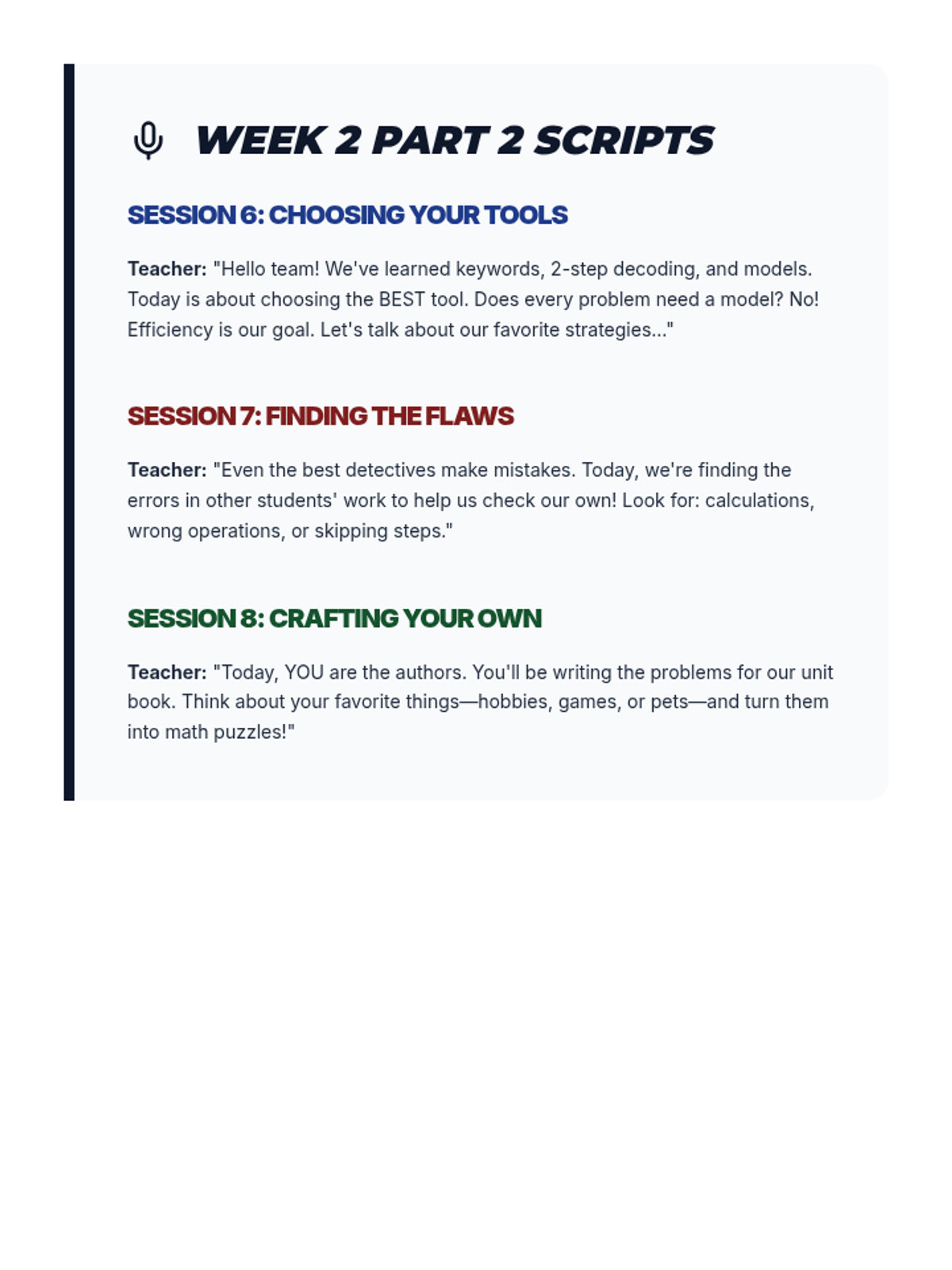 A comprehensive 3-week, 12-session math intervention unit for 2nd-3rd grade students, focusing on mastering single and double-step addition and subtraction word problems within 1000 through a detective-themed approach.