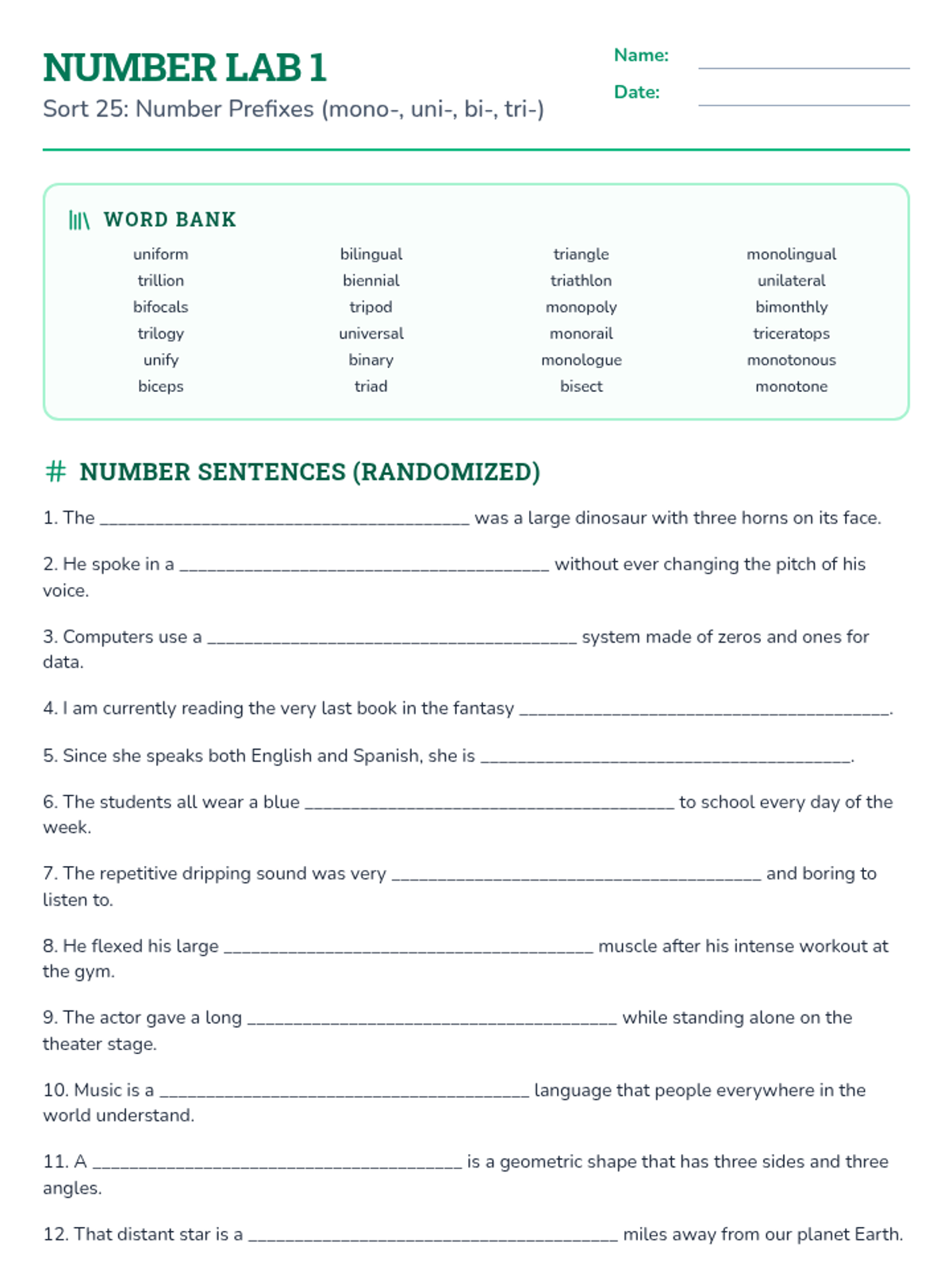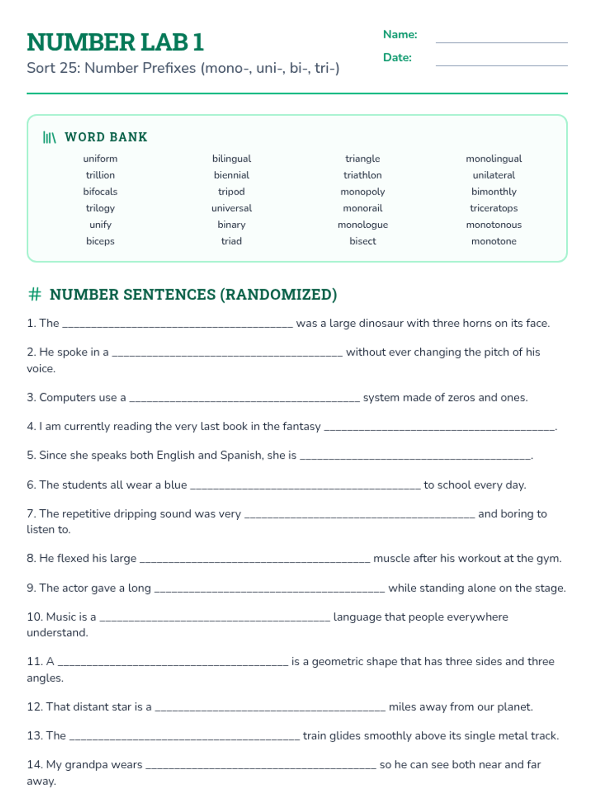 A series of prefix-focused labs designed to help students master common prefixes and suffixes through contextual application and logic puzzles.