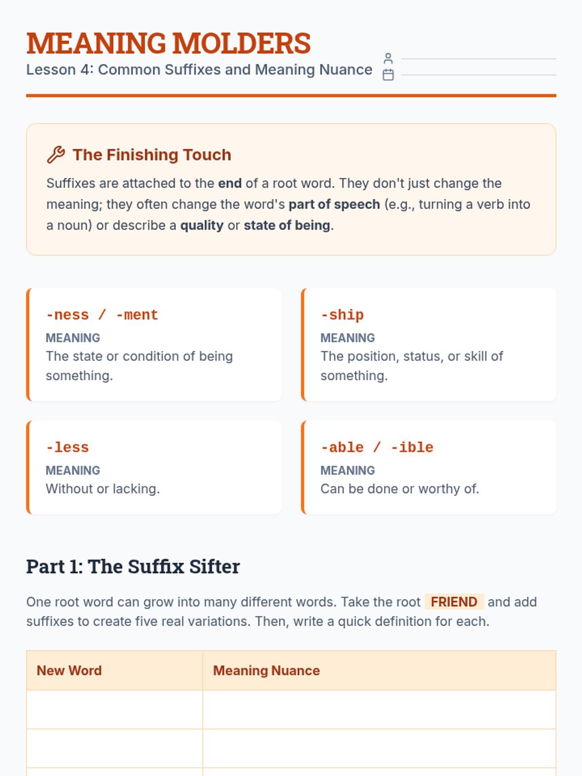 A comprehensive 7th-grade unit on morphology, focusing on prefixes, suffixes, and root words to unlock complex vocabulary through a 'word surgery' approach.