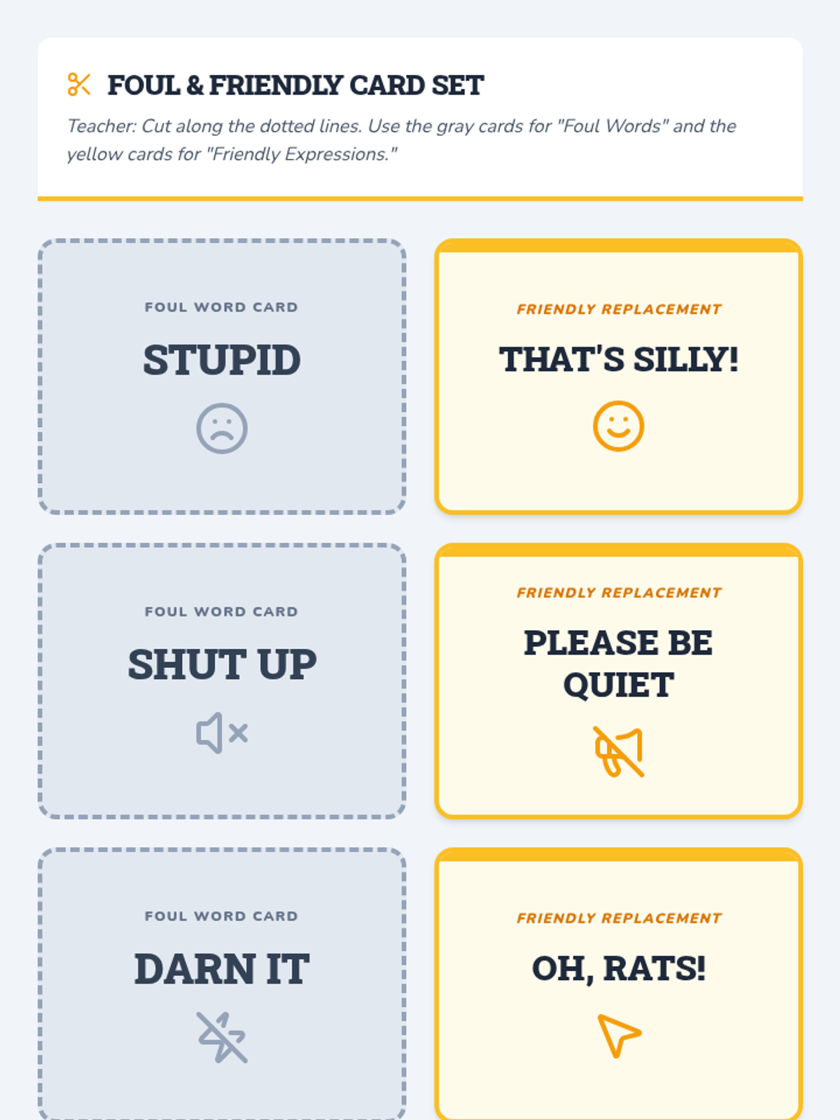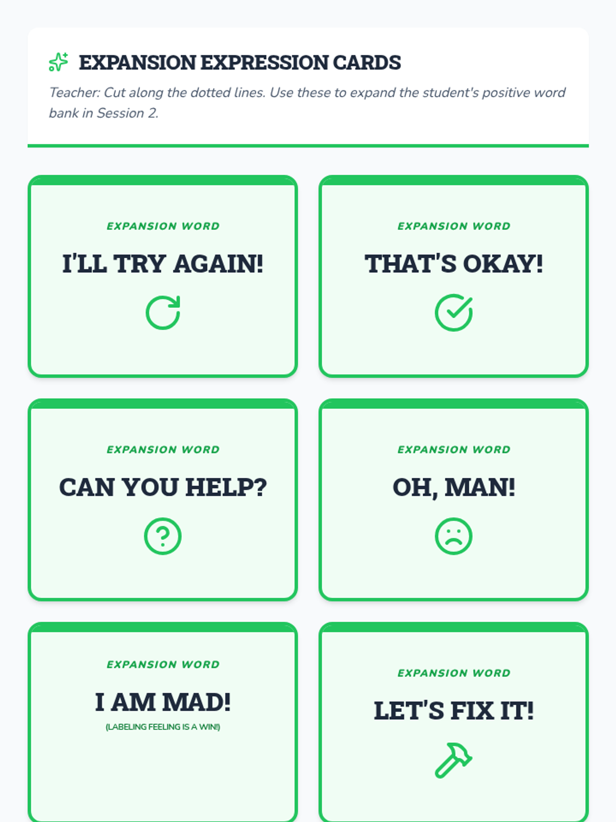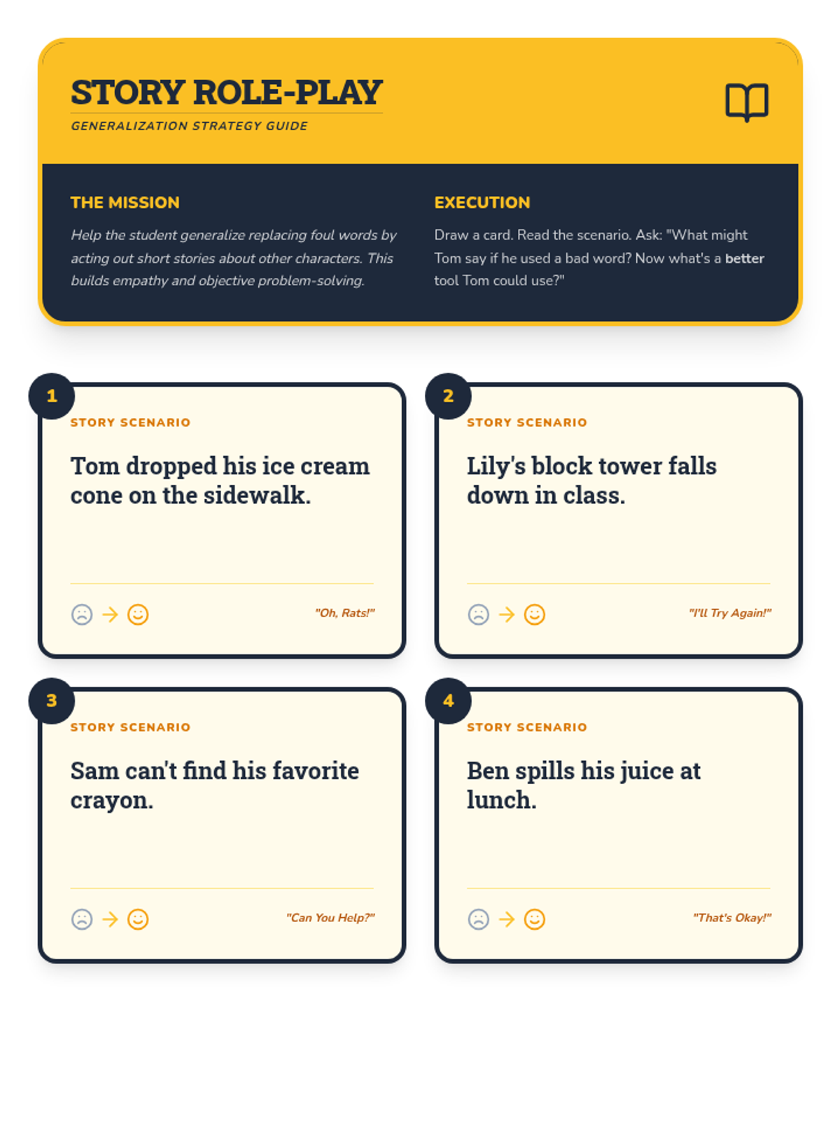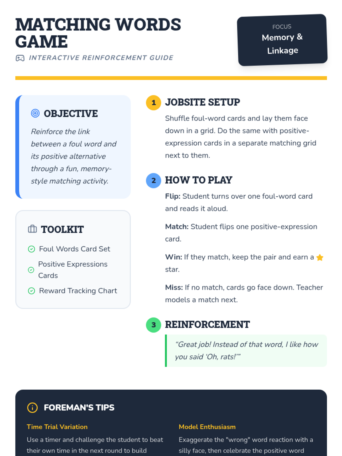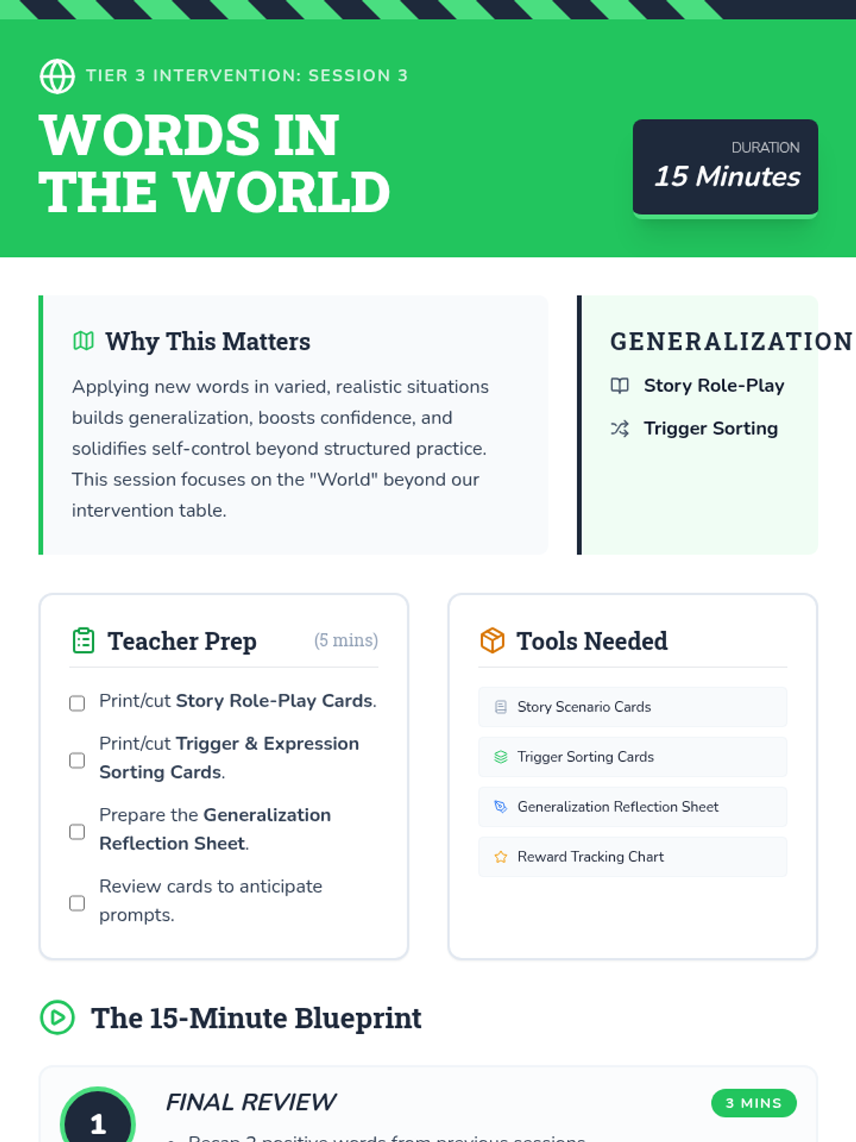 A three-session Tier 3 intervention for kindergarten students focusing on replacing foul language with positive expressions through games, role-play, and self-monitoring.