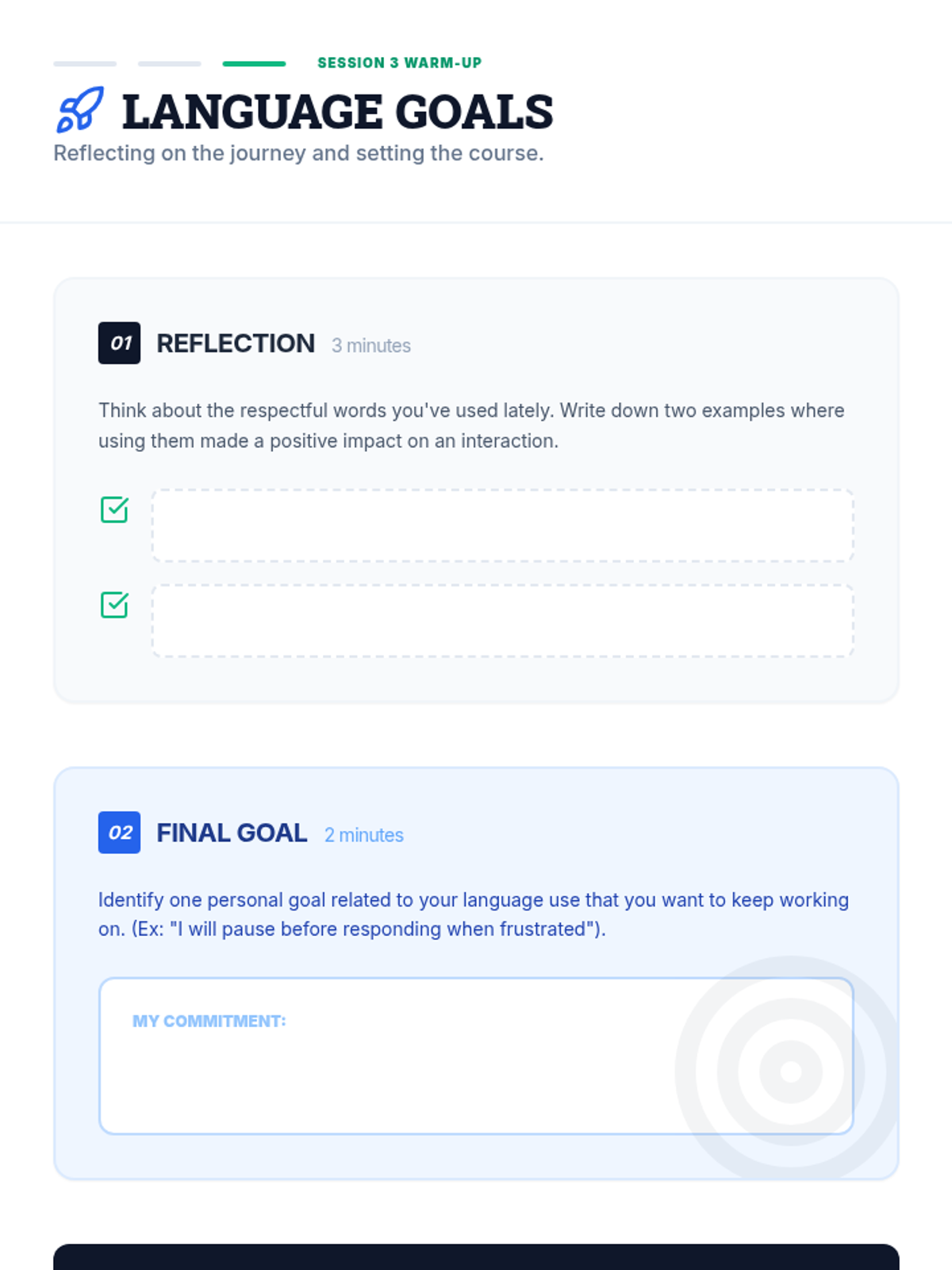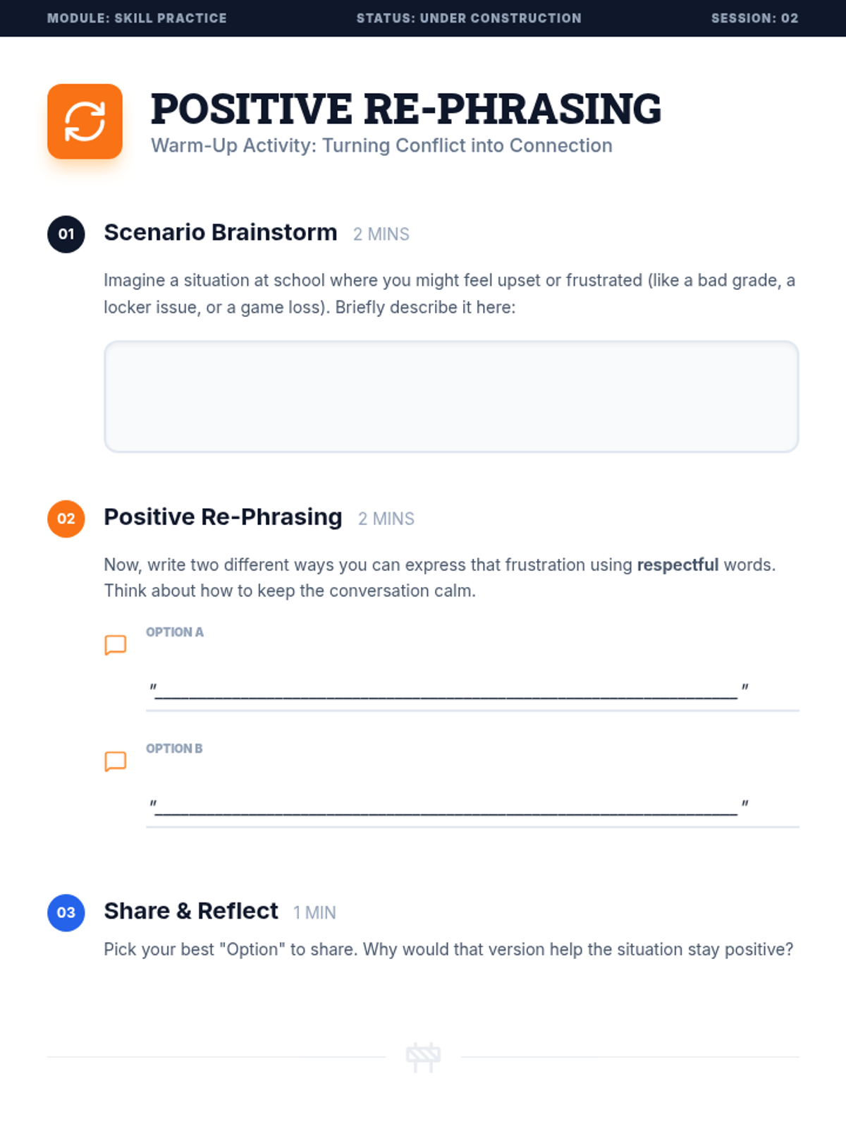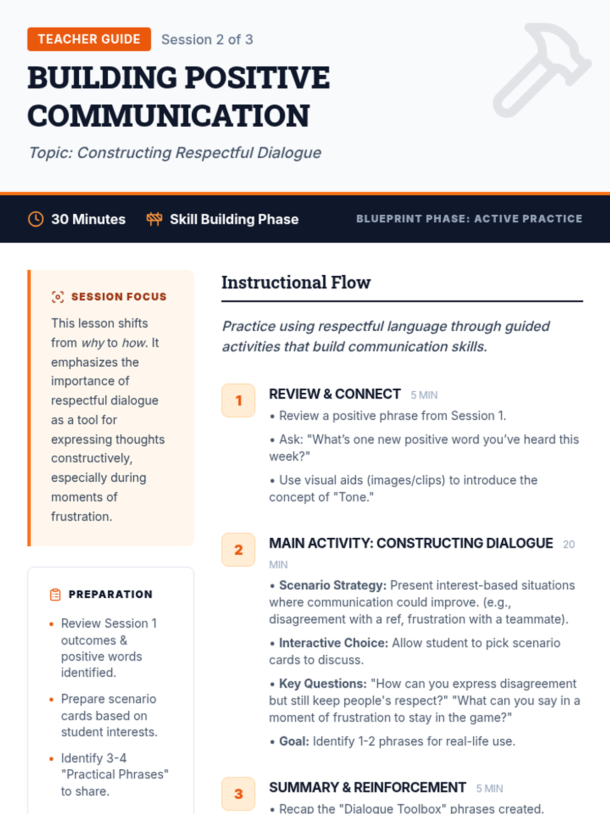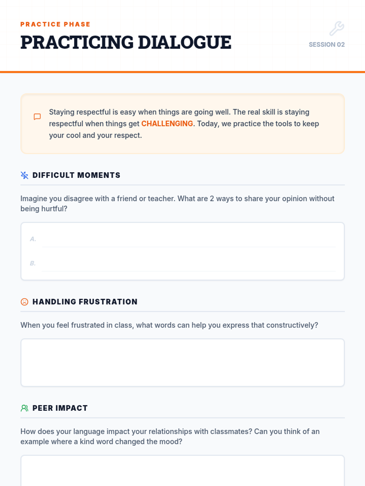 A three-session Tier 3 intervention sequence for middle school students focusing on the power of words, respectful communication, and personal growth in interpersonal interactions.