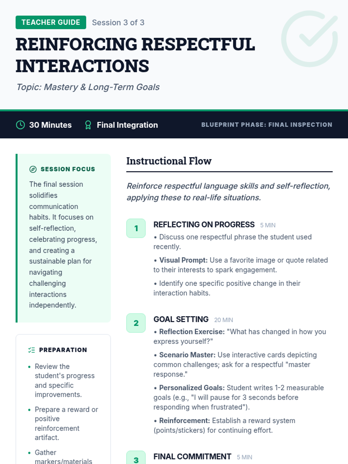 A 5-week social skills and leadership curriculum designed for 7th-grade boys in urban environments. The program transforms 'class clown' energy into positive peer leadership by focusing on respect, social awareness, and personal branding.