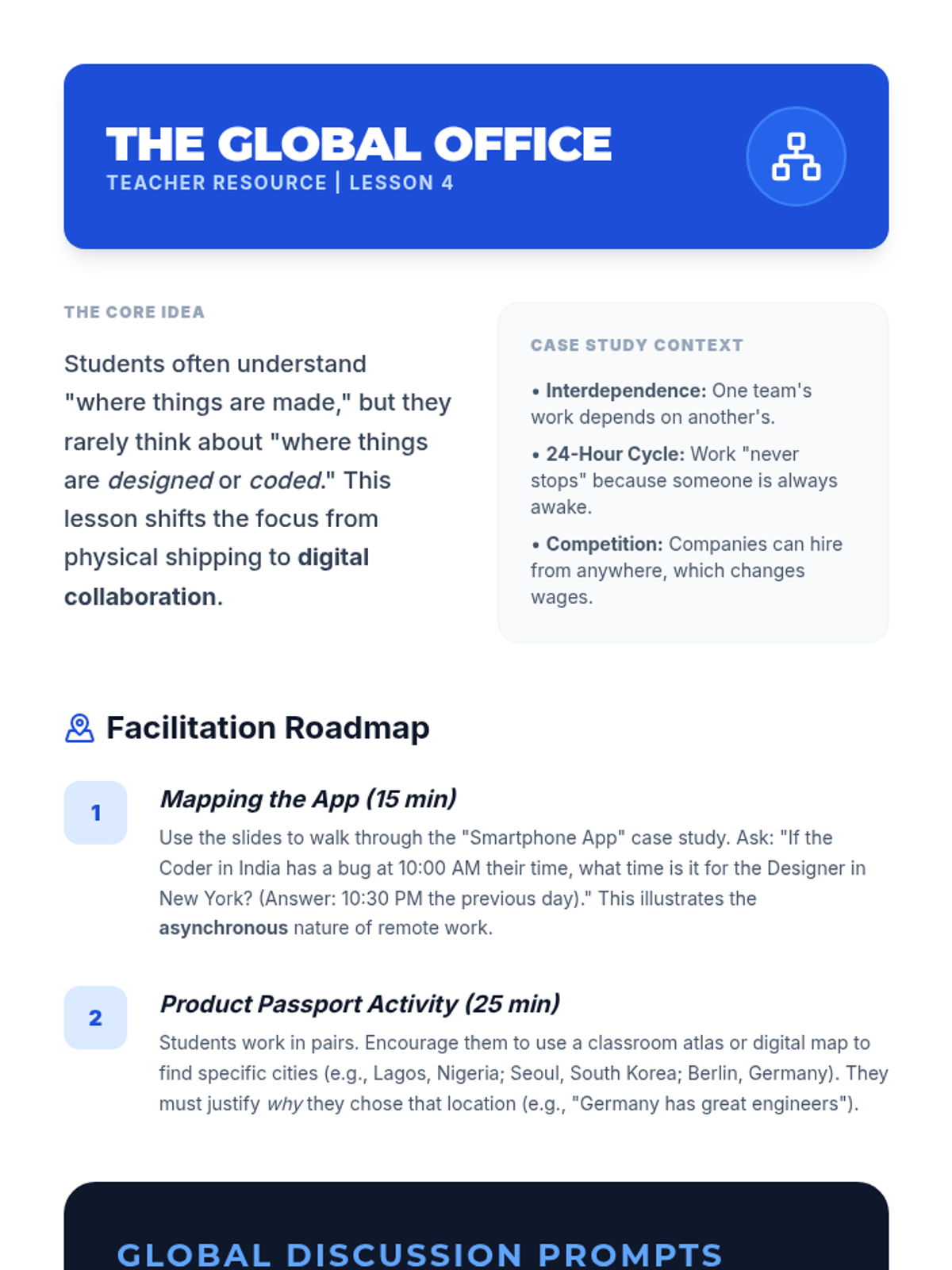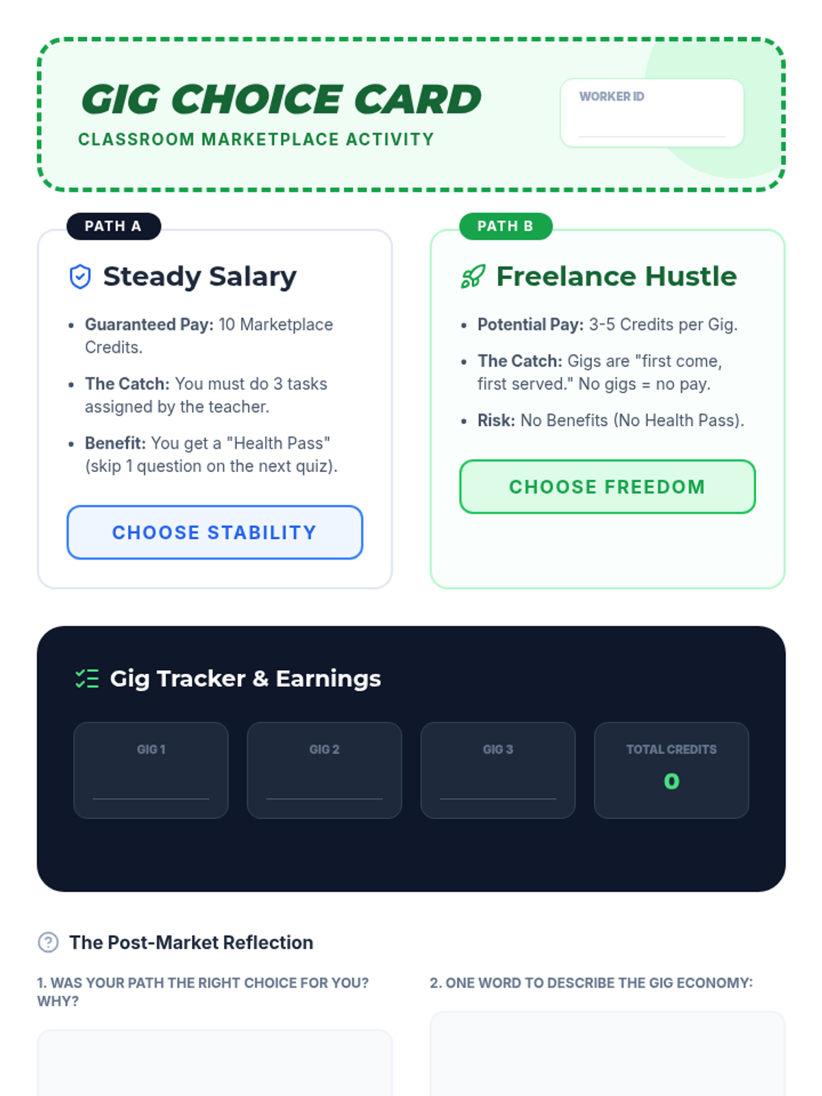 Students investigate the evolution of labor from manual industry to the modern digital economy. They explore how technology, automation, and globalization reshape work tasks, skills, and employment structures.
