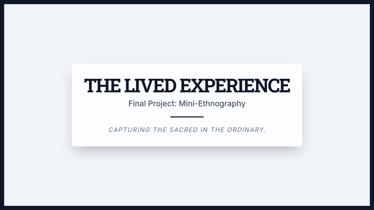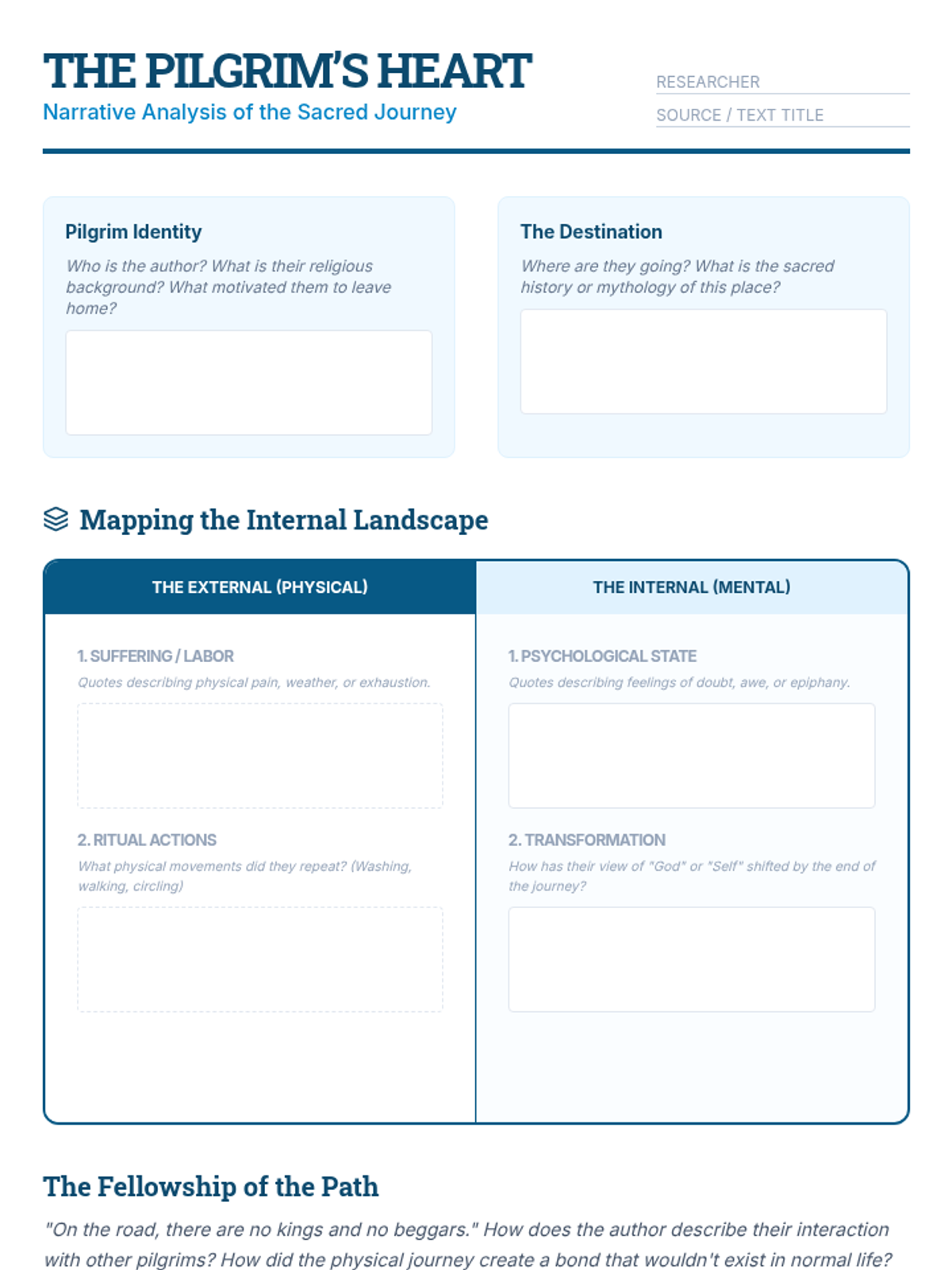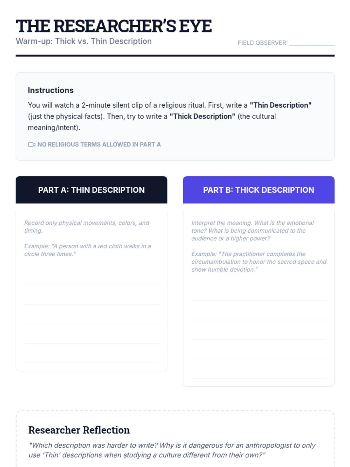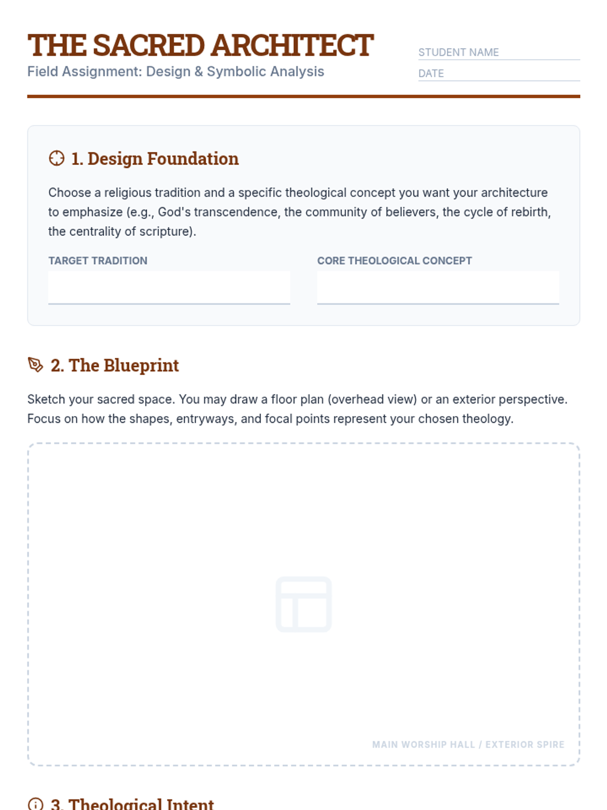 An 11th-grade anthropology-based exploration of world religions through the lens of lived experience, rituals, and cultural expressions. Students move beyond abstract theology to understand how beliefs are manifested in architecture, diet, rites of passage, and pilgrimage.