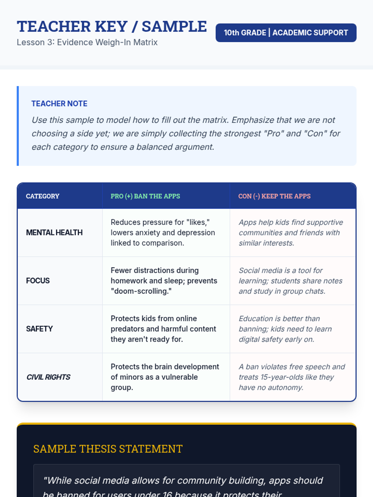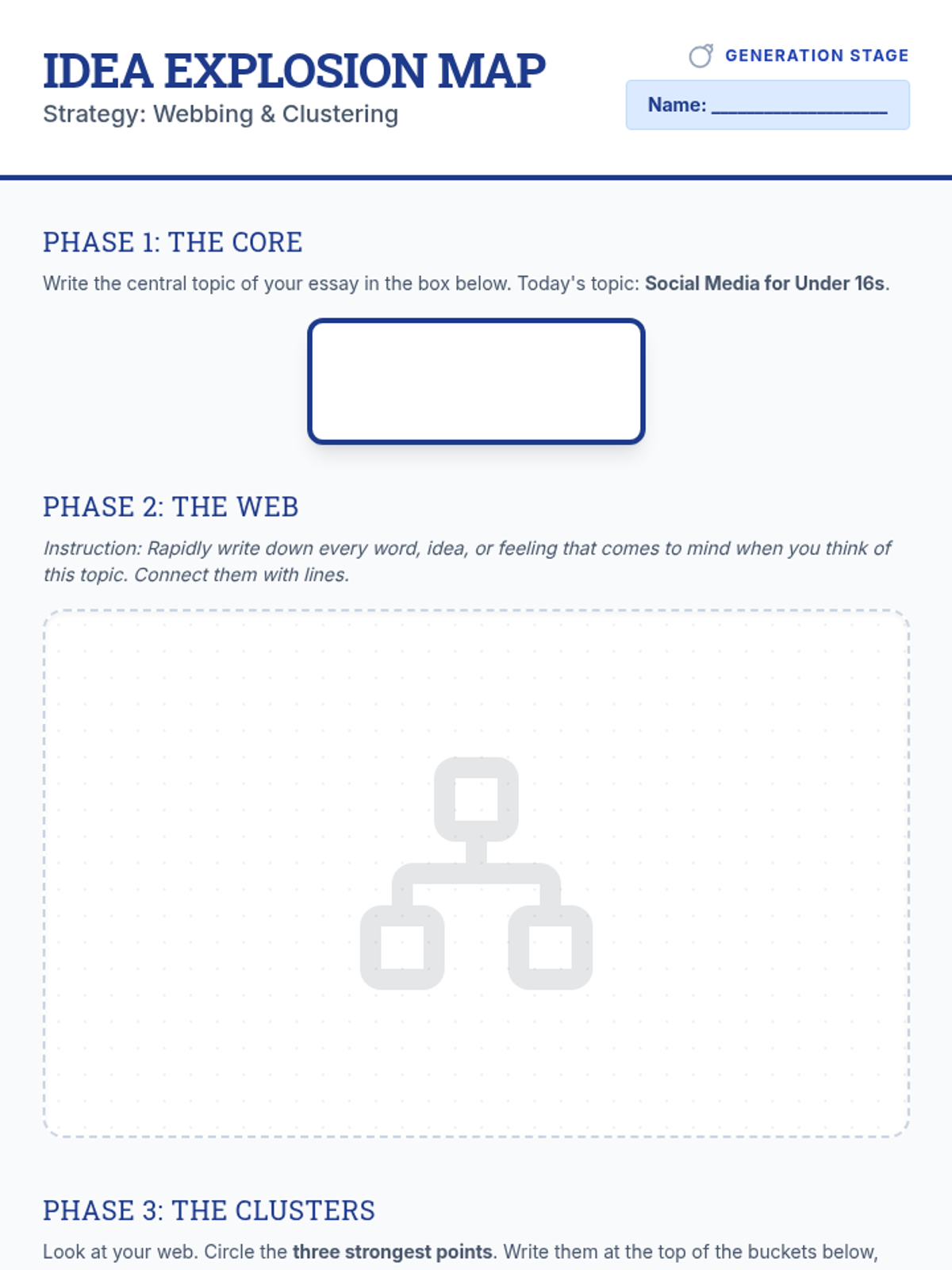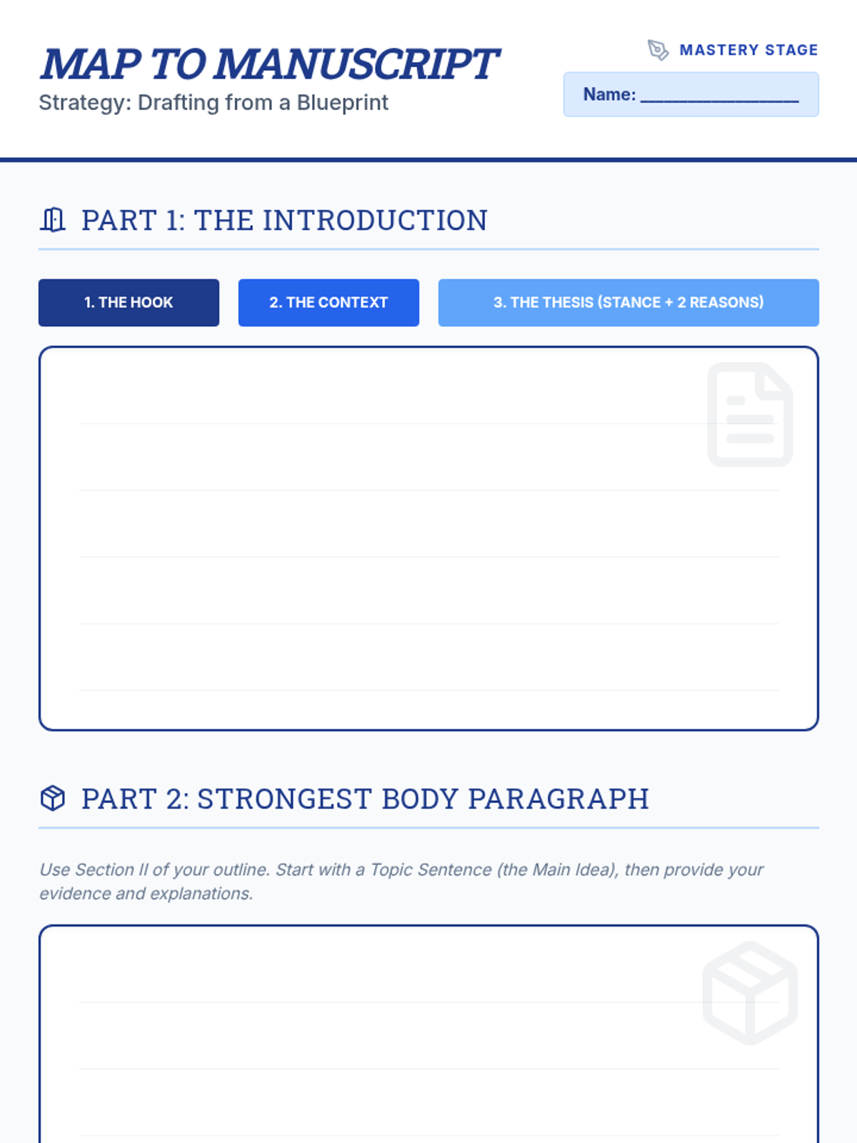 A 10th-grade workshop-style sequence teaching students how to use visual planning tools to bridge the gap between brainstorming and academic writing. Students learn to analyze prompts, categorize ideas, and translate graphic organizers into formal outlines and drafts.