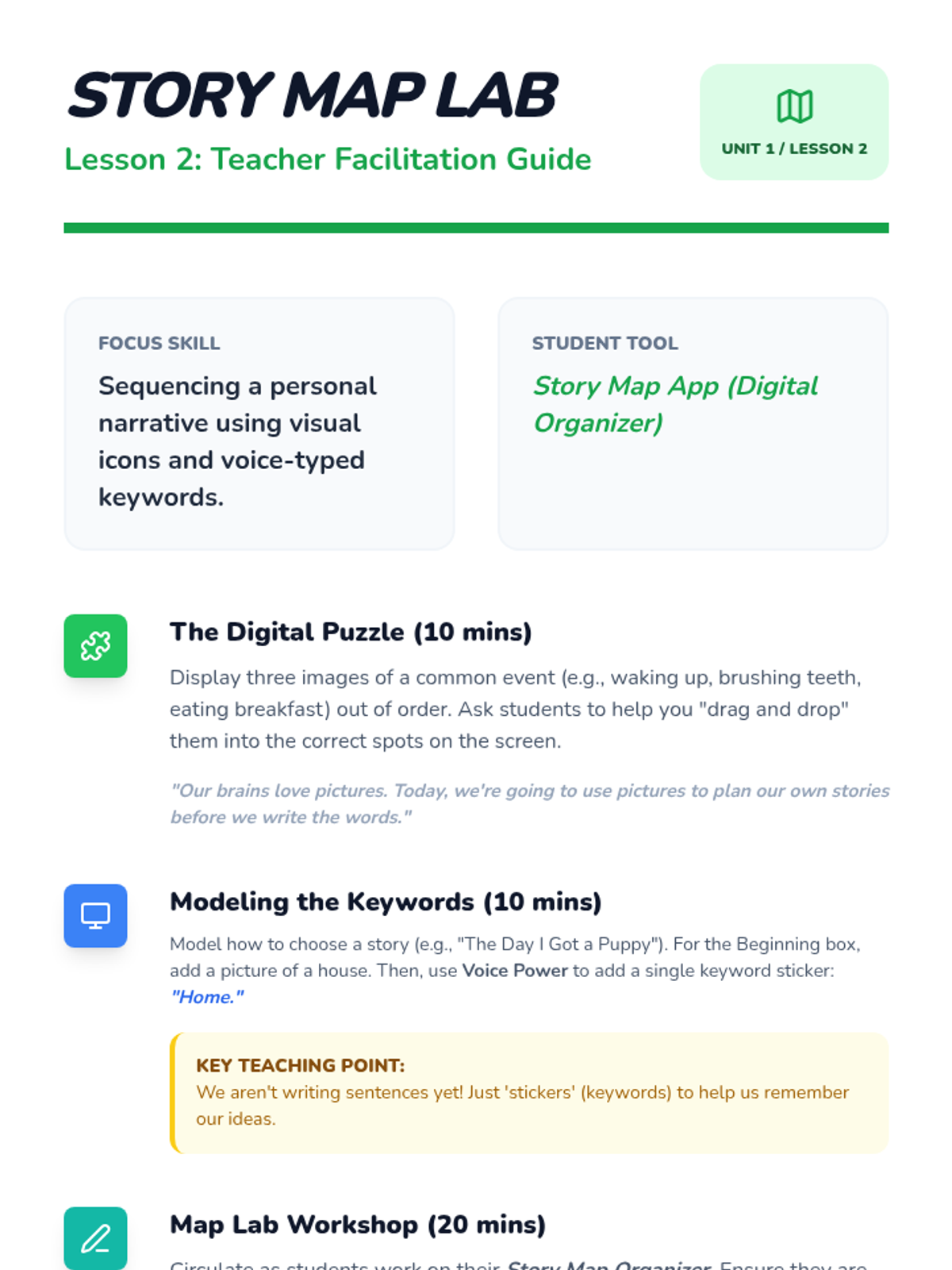 A sequence for 2nd Grade students to master text-to-speech (TTS) as a tool for reading comprehension. Students transition from decoding mechanics to deep understanding by using auditory support to predict, pause, answer questions, visualize, and sequence stories.