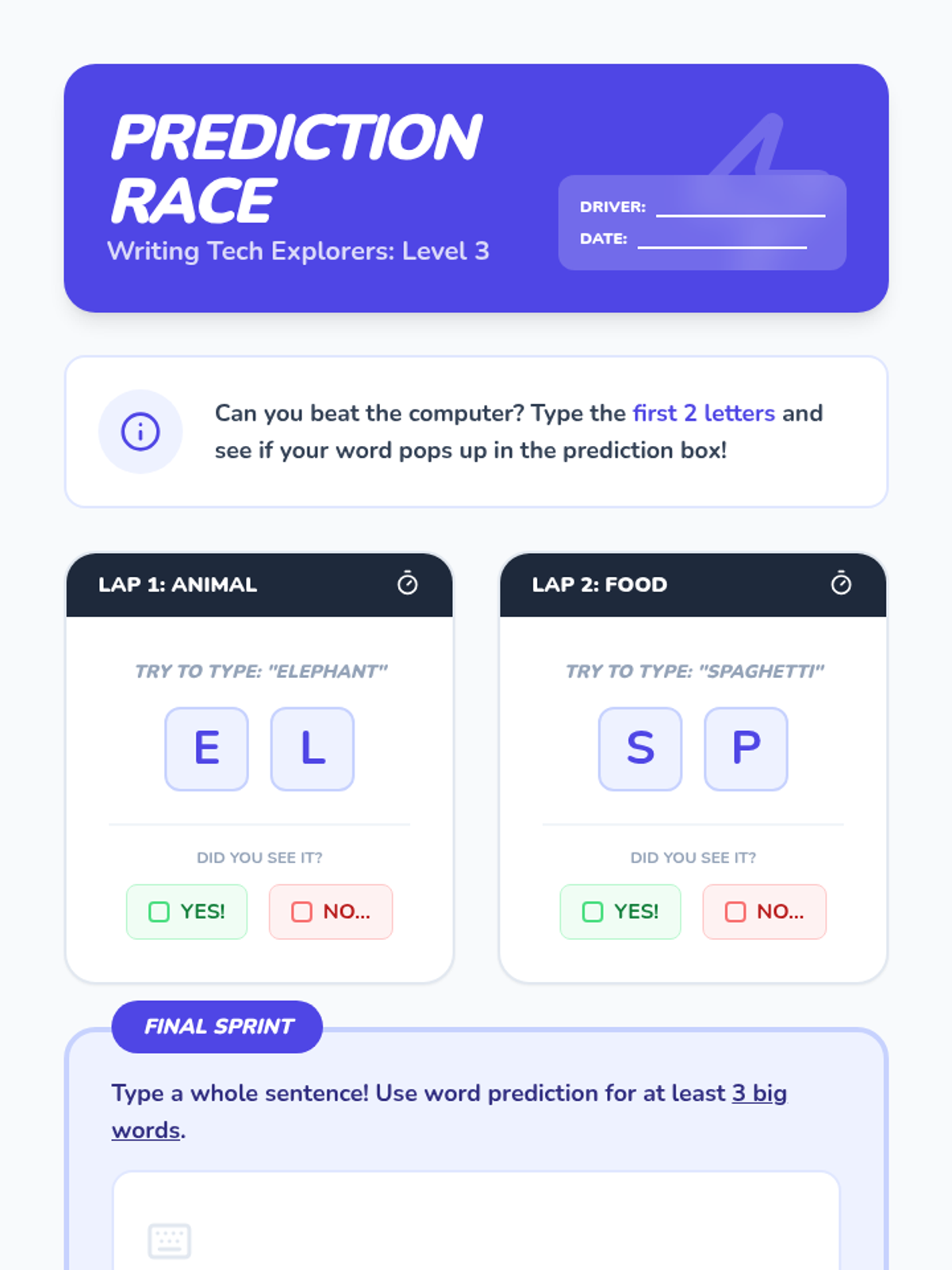This sequence introduces 2nd-grade students to assistive writing technology, including speech-to-text, digital organizers, word prediction, and text-to-speech, to foster independence in writing.