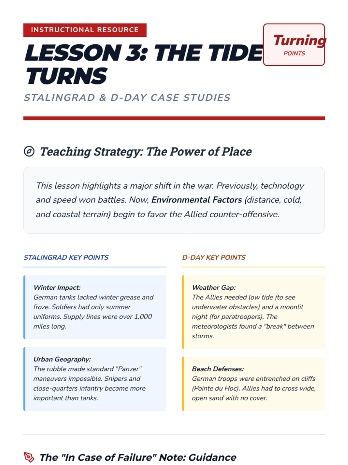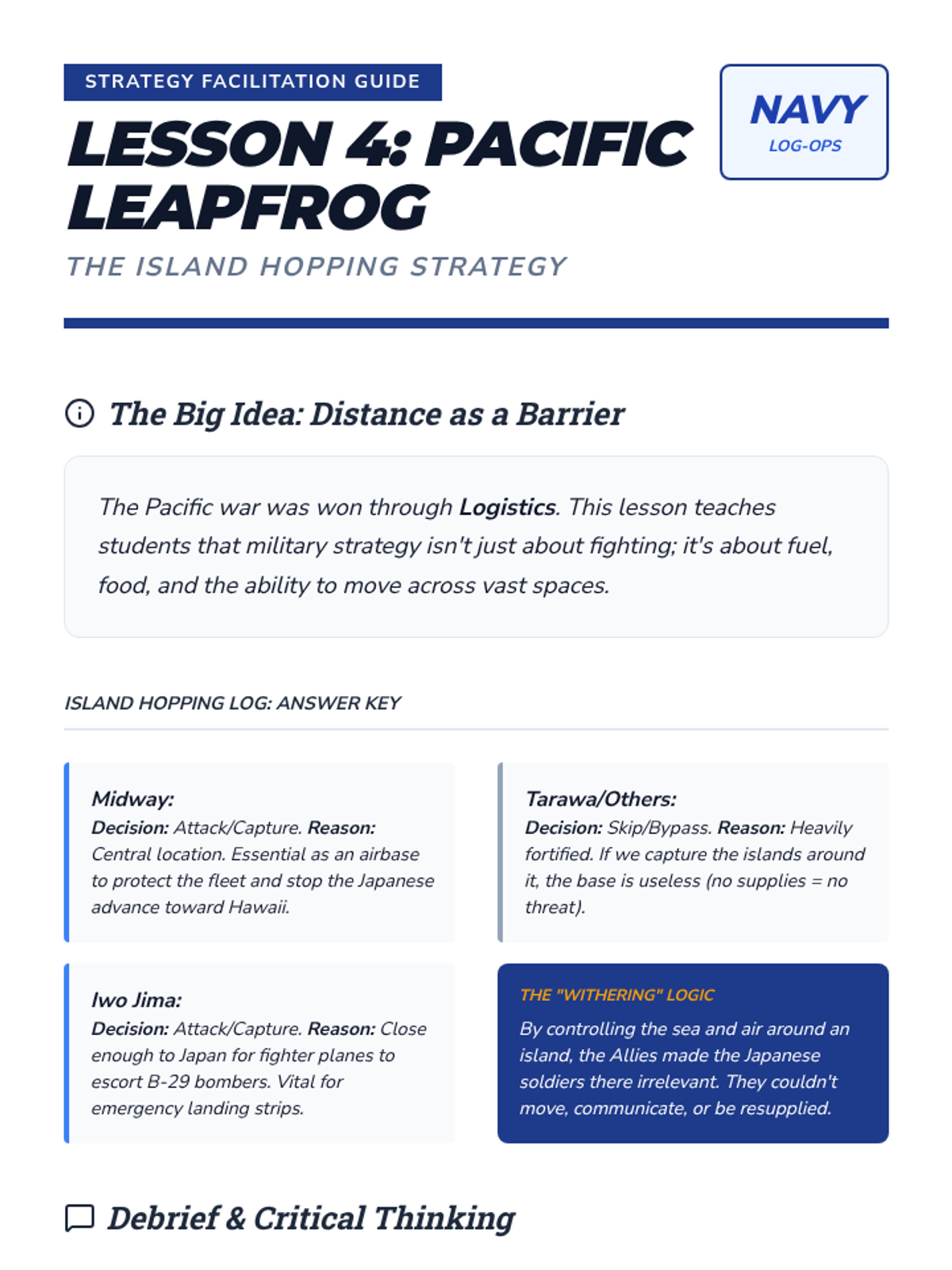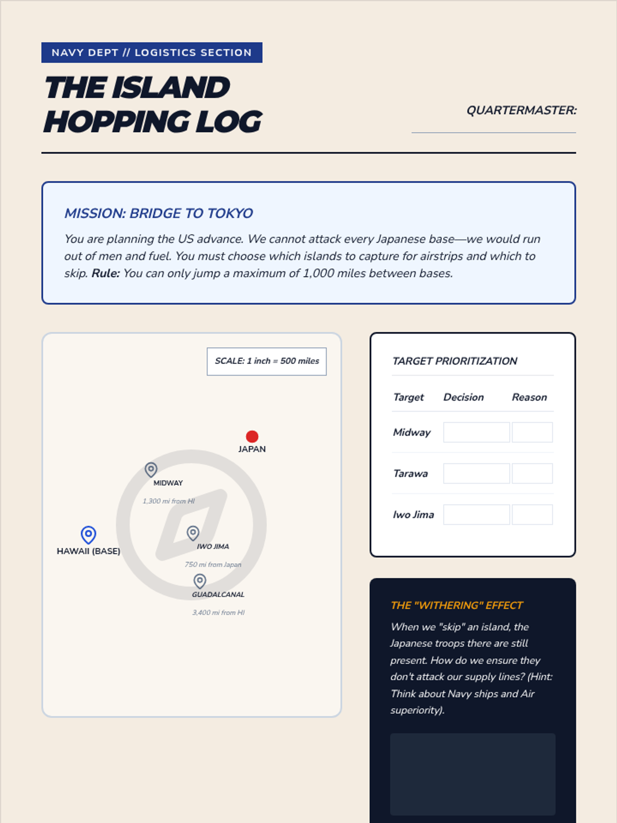 A comprehensive 7th-grade history sequence exploring the military geography and strategic shifts of WWII. Students analyze 'Blitzkrieg', the technology of Radar, the environmental challenges of Stalingrad and D-Day, the logistics of the Pacific 'Island Hopping' campaign, and the vital role of Navajo Code Talkers.