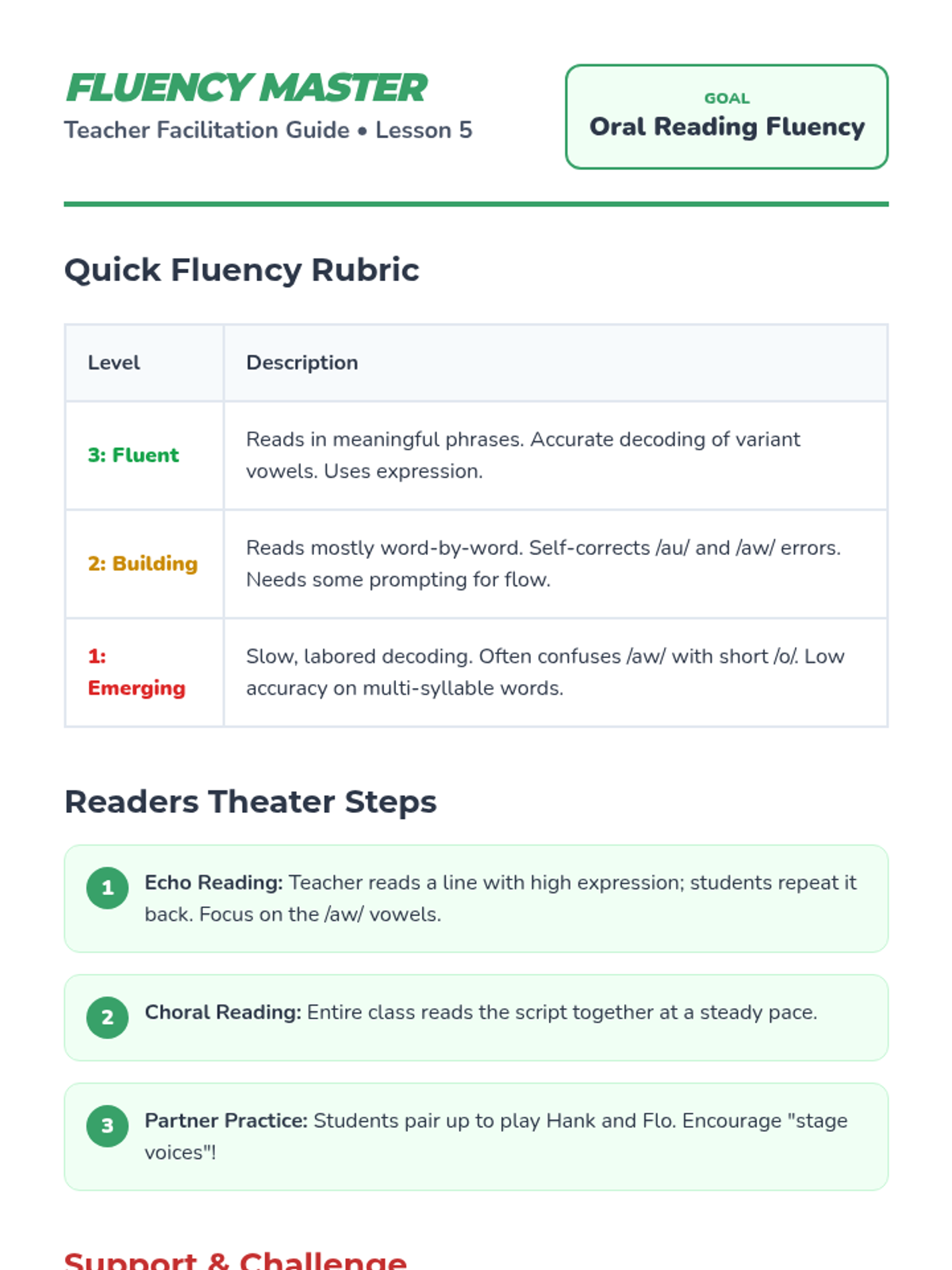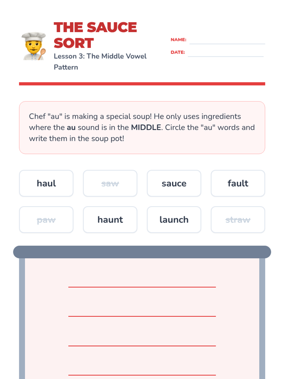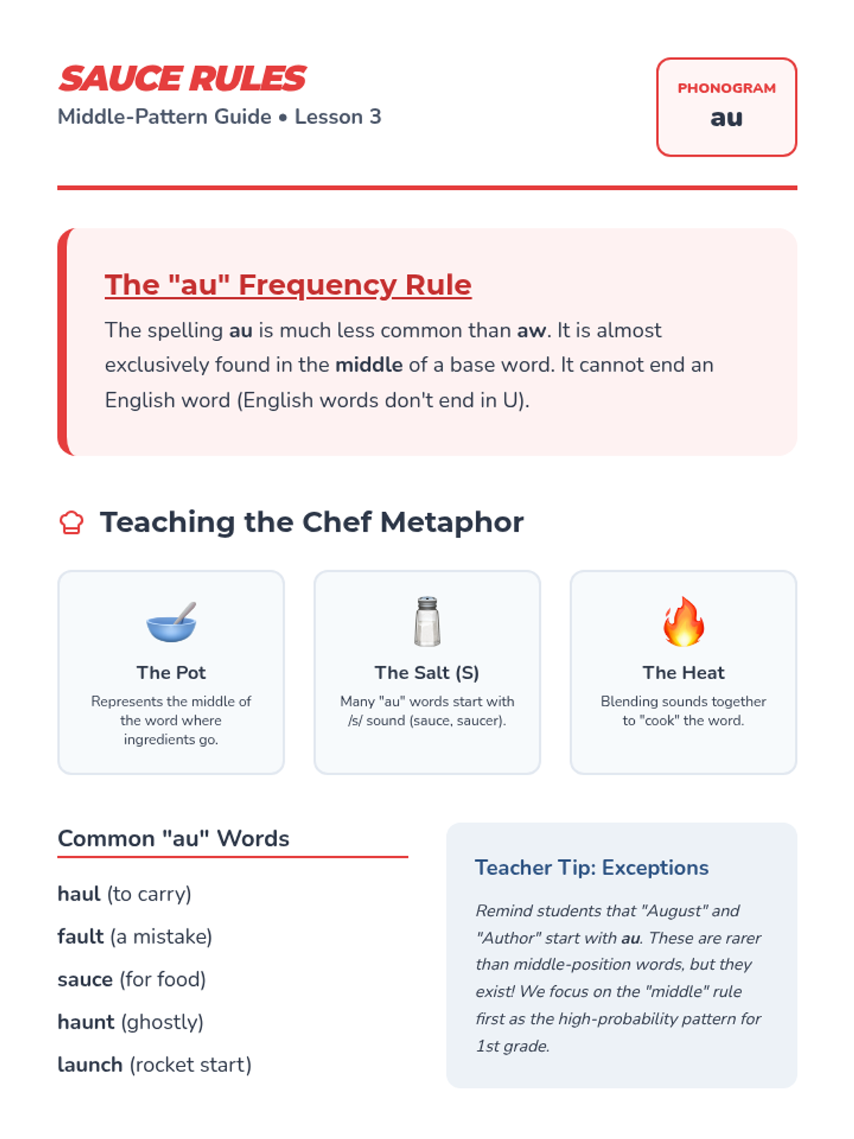 A comprehensive 1st Grade sequence focusing on the /au/ and /aw/ variant vowel sounds through explicit phonics instruction, word building, and fluency practice. Students explore the 'Yawning Vowel' theme to master decoding and spelling these complex patterns.