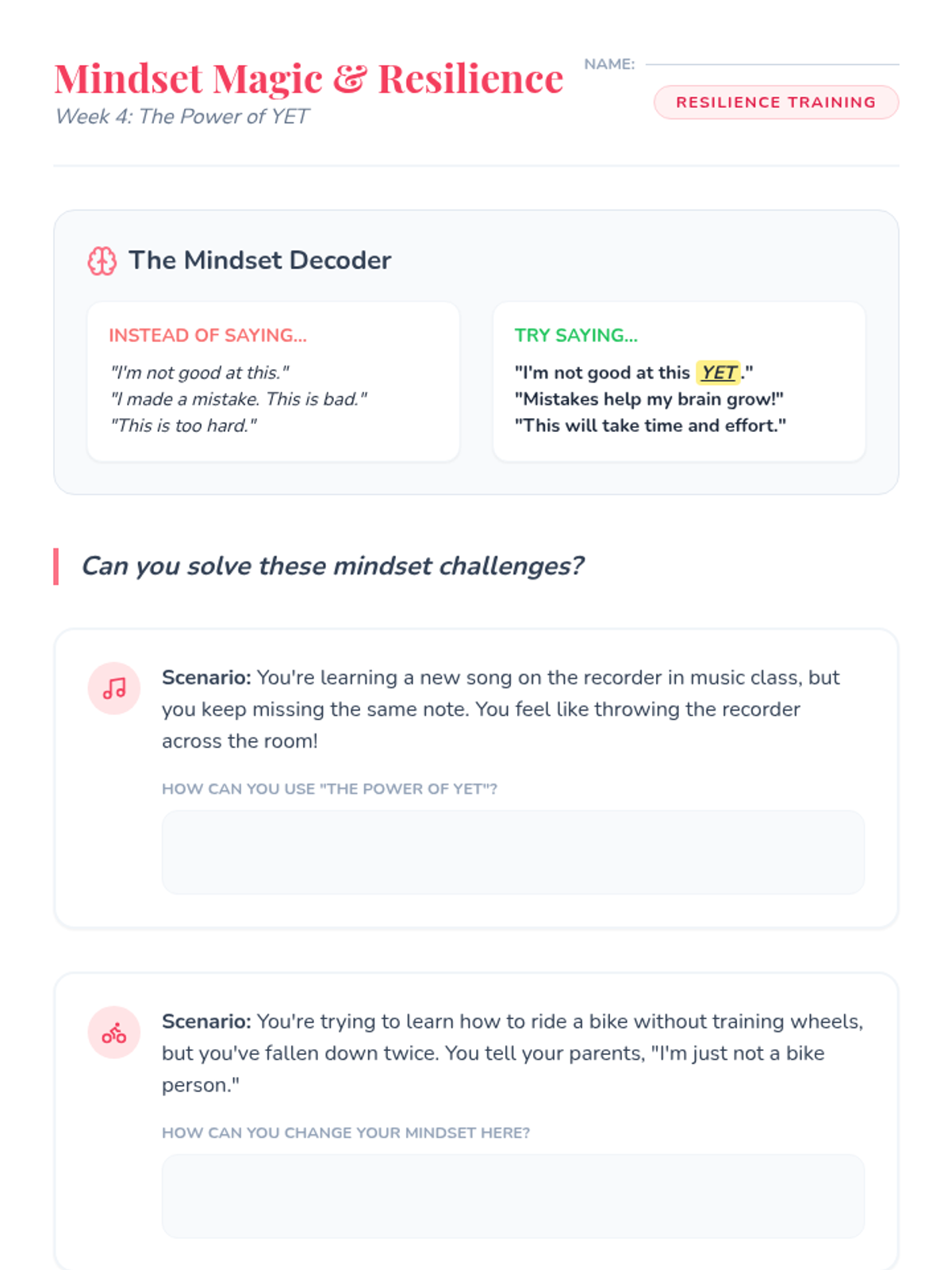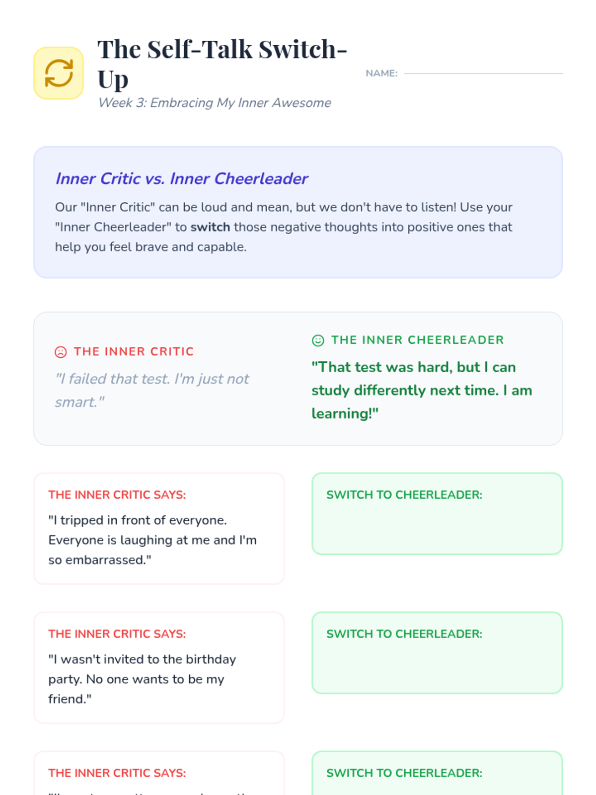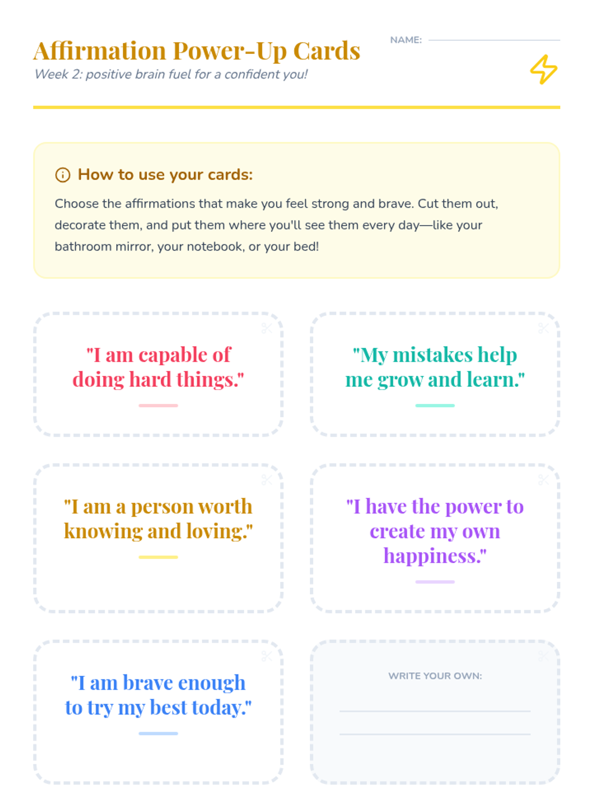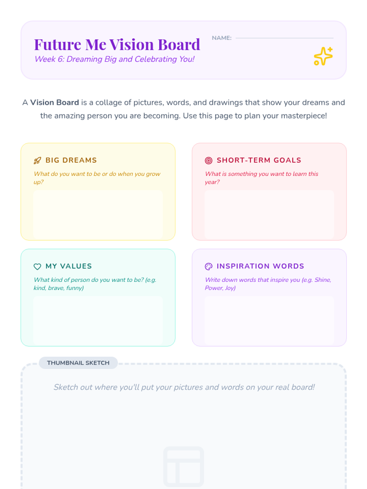 A 6-week empowerment program for 4th-grade girls designed to build self-esteem, identify personal strengths, and develop resilience through creative activities and group discussion.