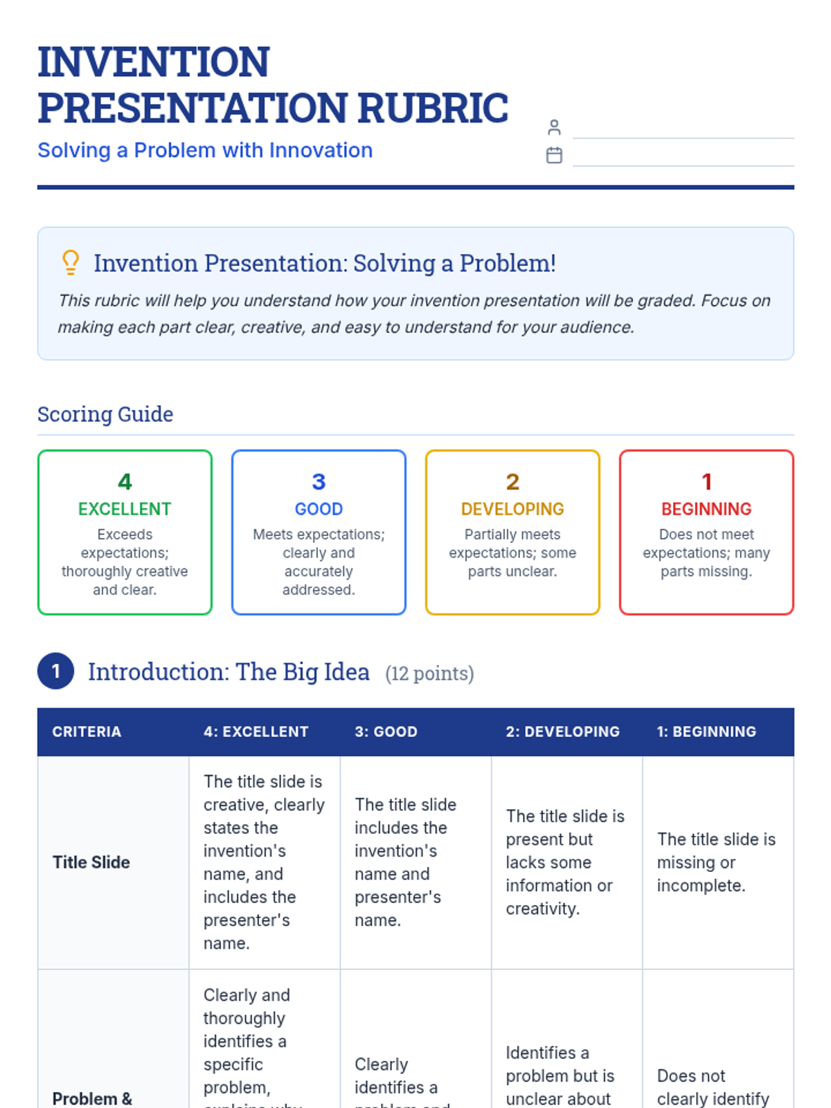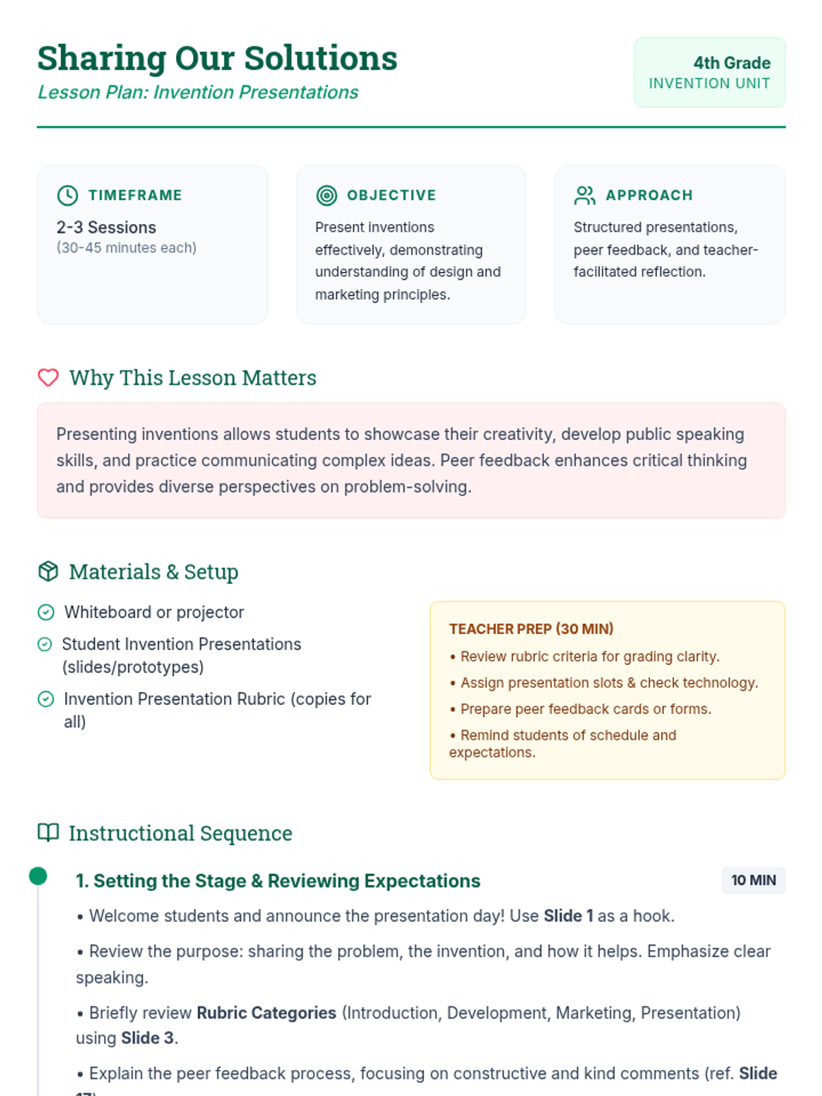 A unit focused on the culmination of the invention process, covering the presentation, assessment, and celebration of student innovation.