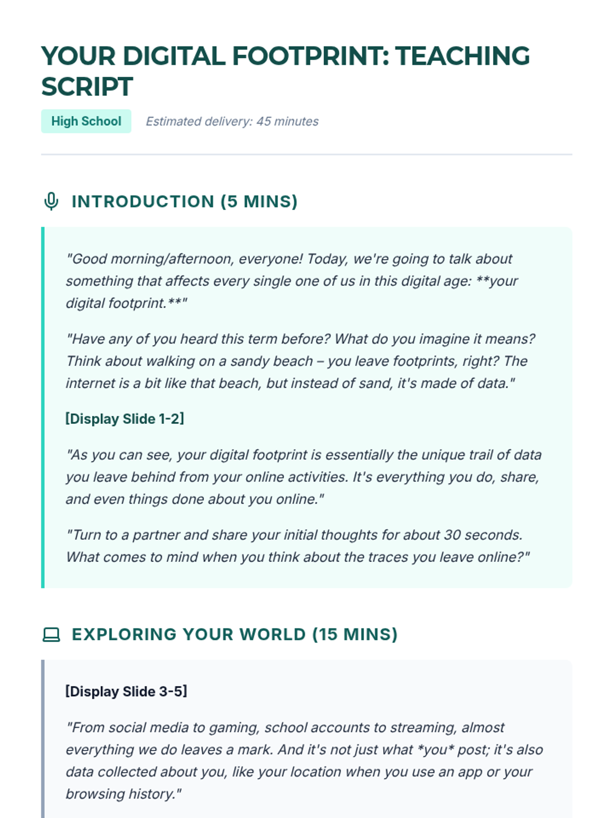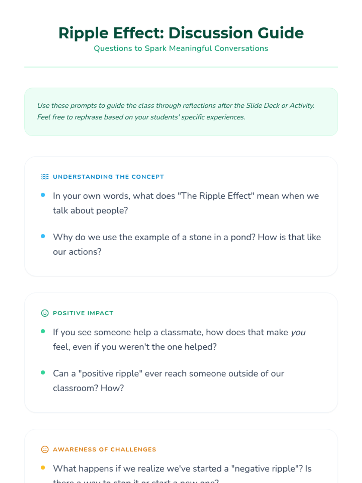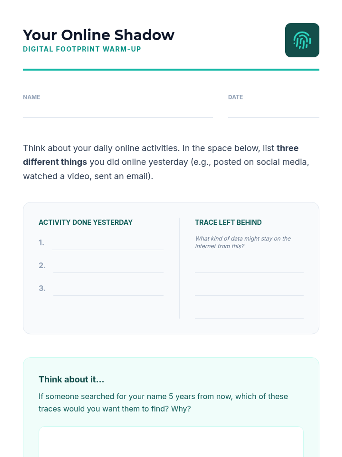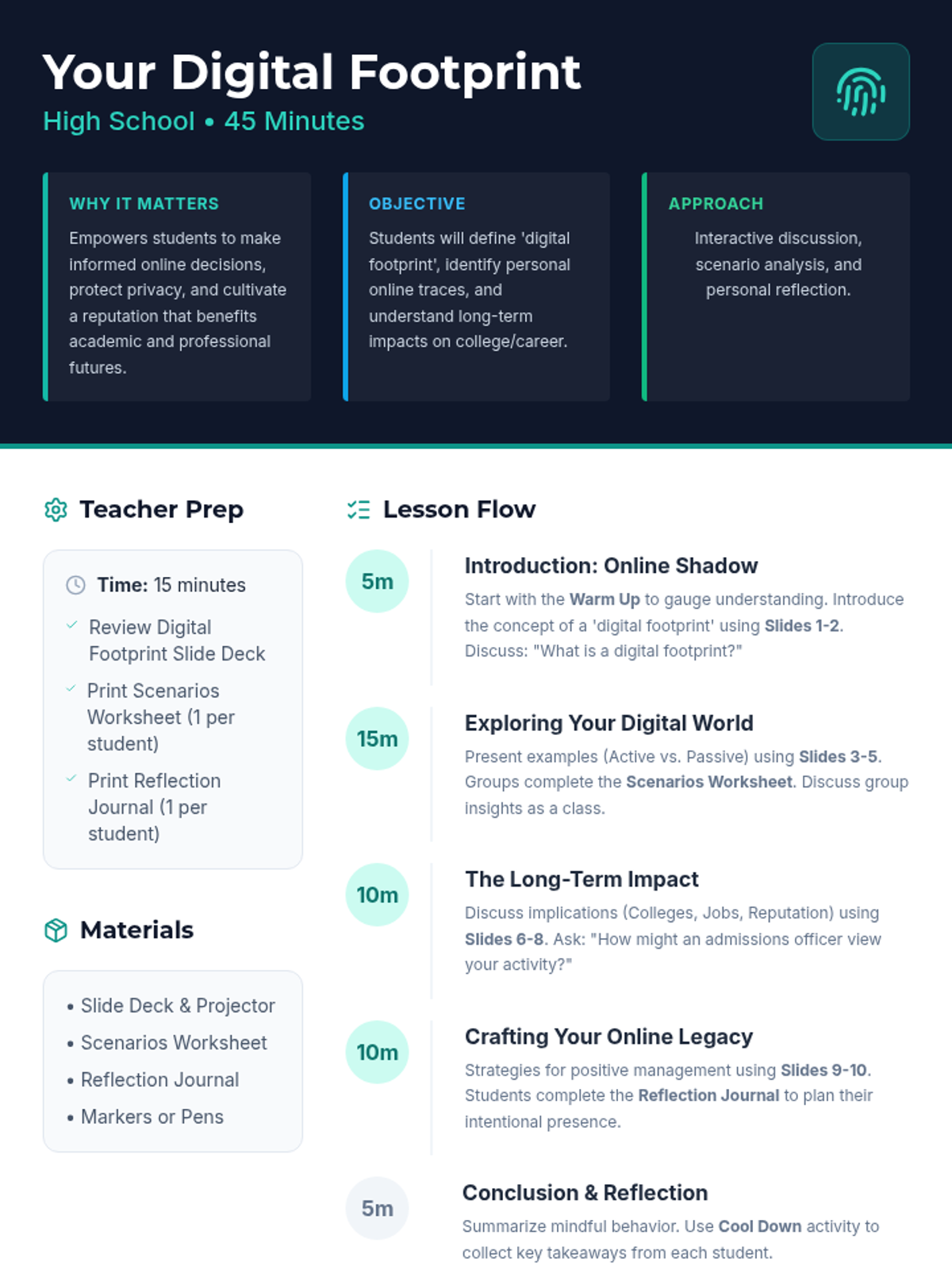 A sequence of lessons exploring the science of habits, the reality of digital footprints, and the social impact of the 'ripple effect' on communities.