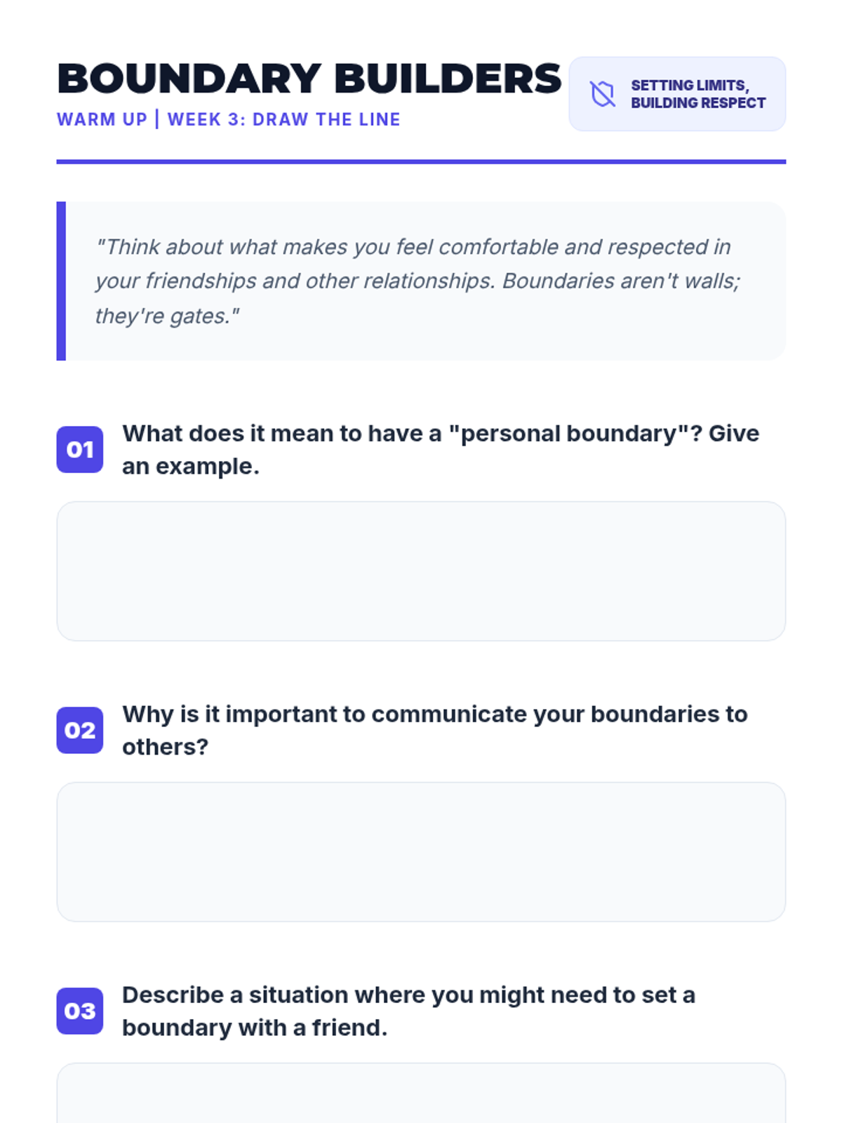 A 6-week social skills curriculum for middle schoolers, focusing on social thinking, awareness, impulse control, and peer socialization through an architectural 'Blueprint' theme.