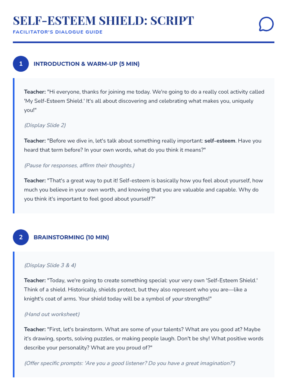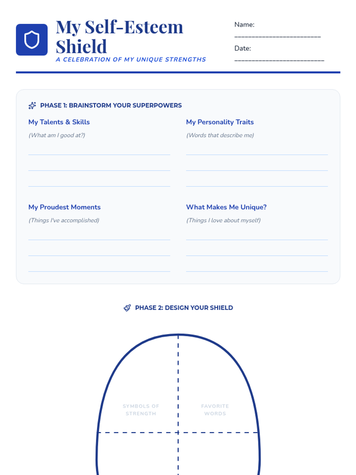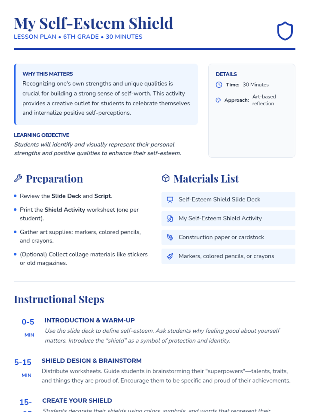 A series of self-discovery lessons designed to help students navigate their personal identity, from identifying core values in high school to building self-esteem in middle school.