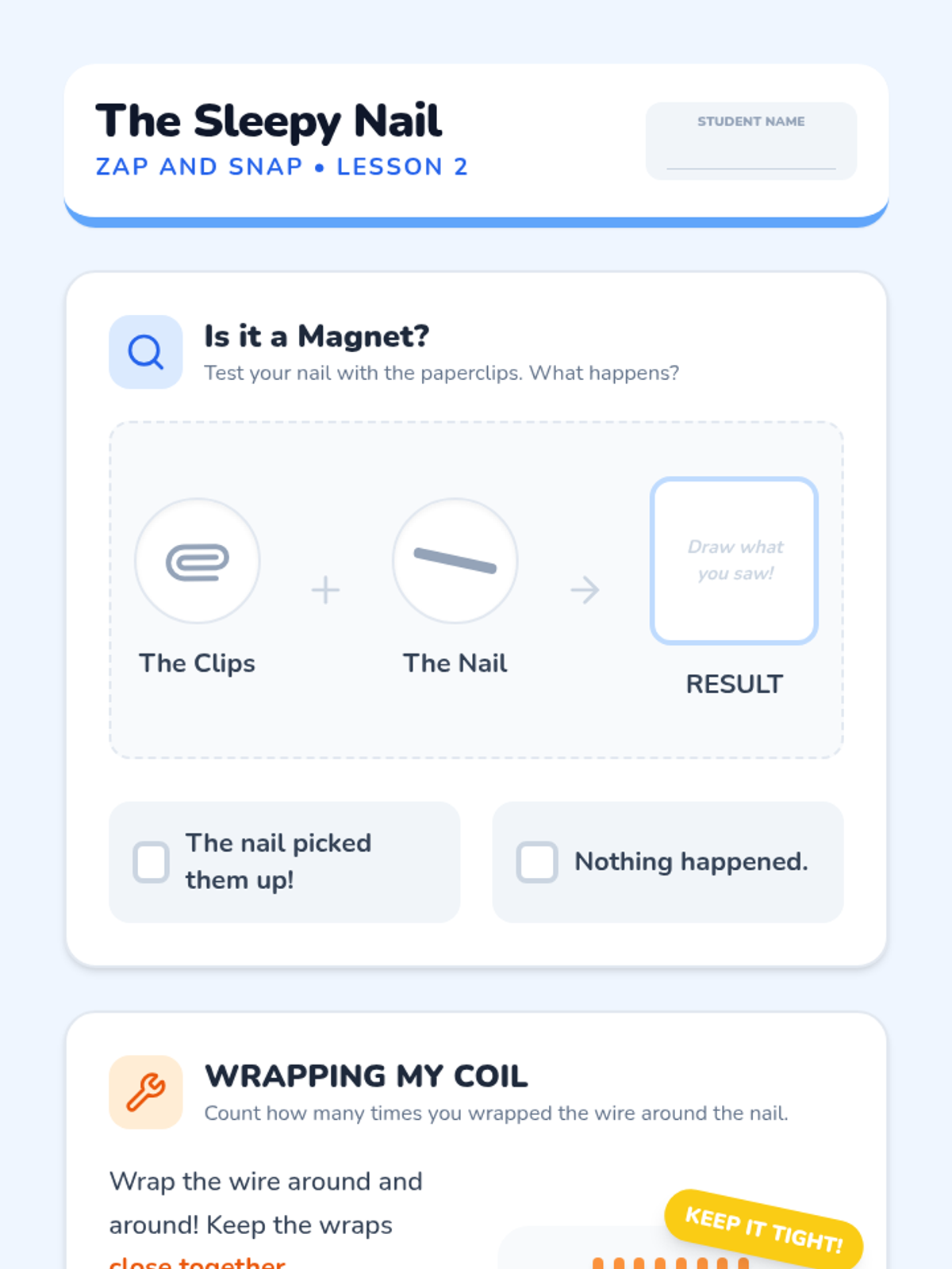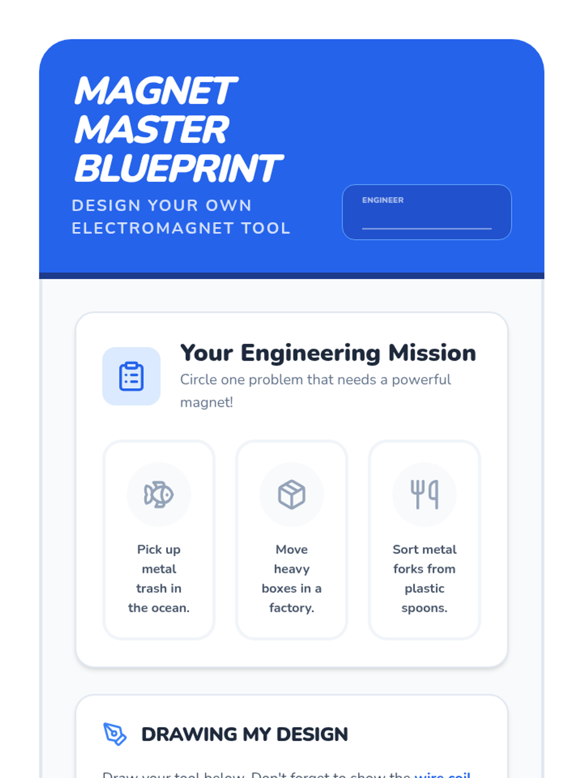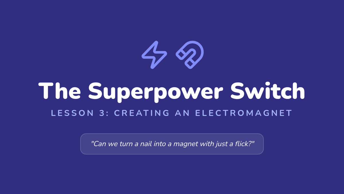 A hands-on introductory physics sequence for 1st graders exploring how electricity can create temporary magnetic fields. Students build simple electromagnets, compare them to permanent magnets, and discover real-world engineering applications like scrap metal cranes.