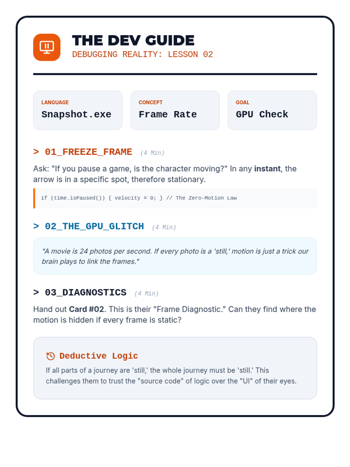 A series of four 10-15 minute logic lessons for middle school students, focusing on Zeno's paradoxes and the 'Paradox Player' thinking style. Students will learn to break ideas into tiny steps, push logic to extremes, and identify contradictions through 'Paradox Breaker' activities.