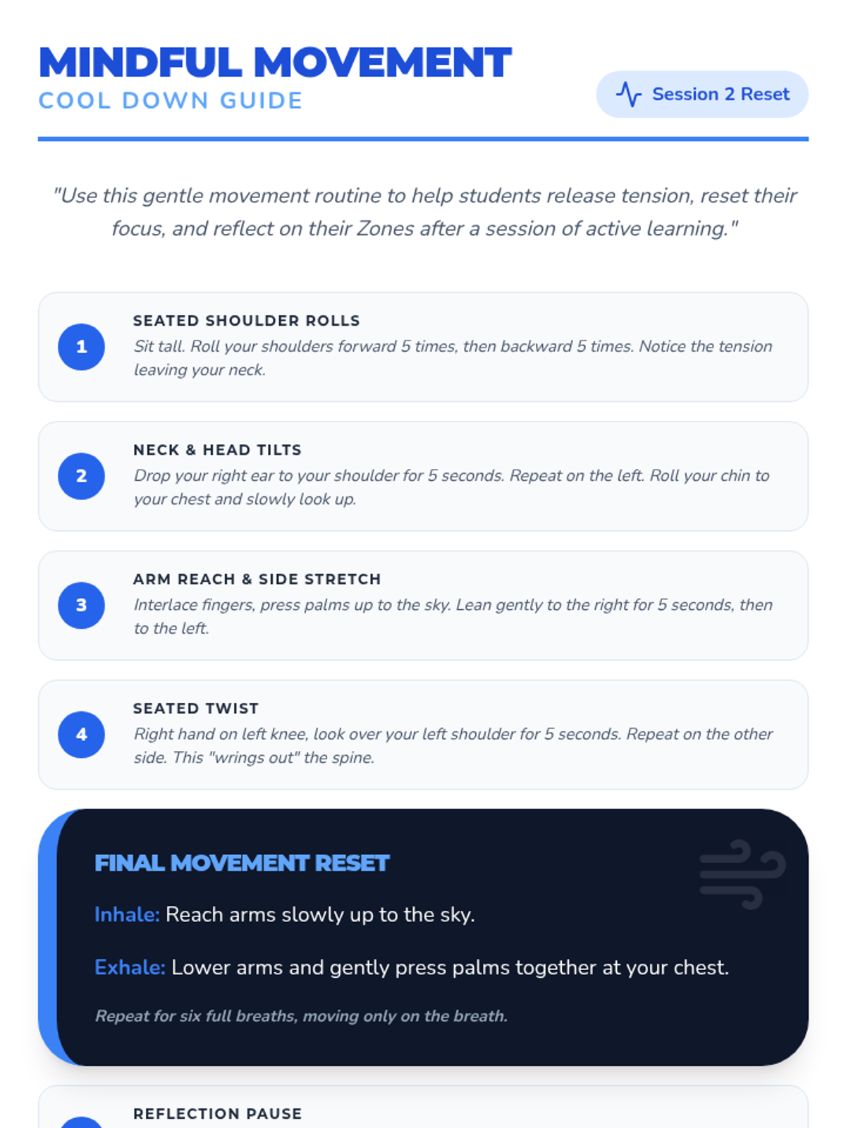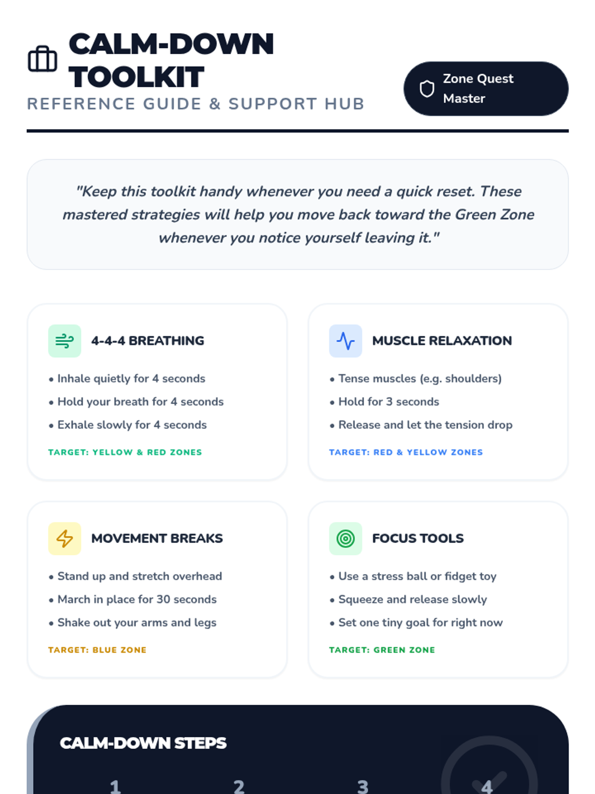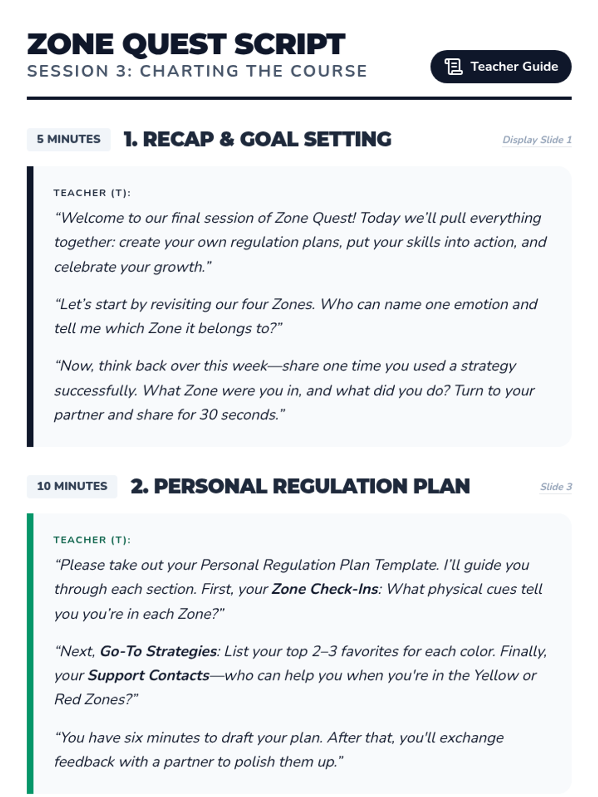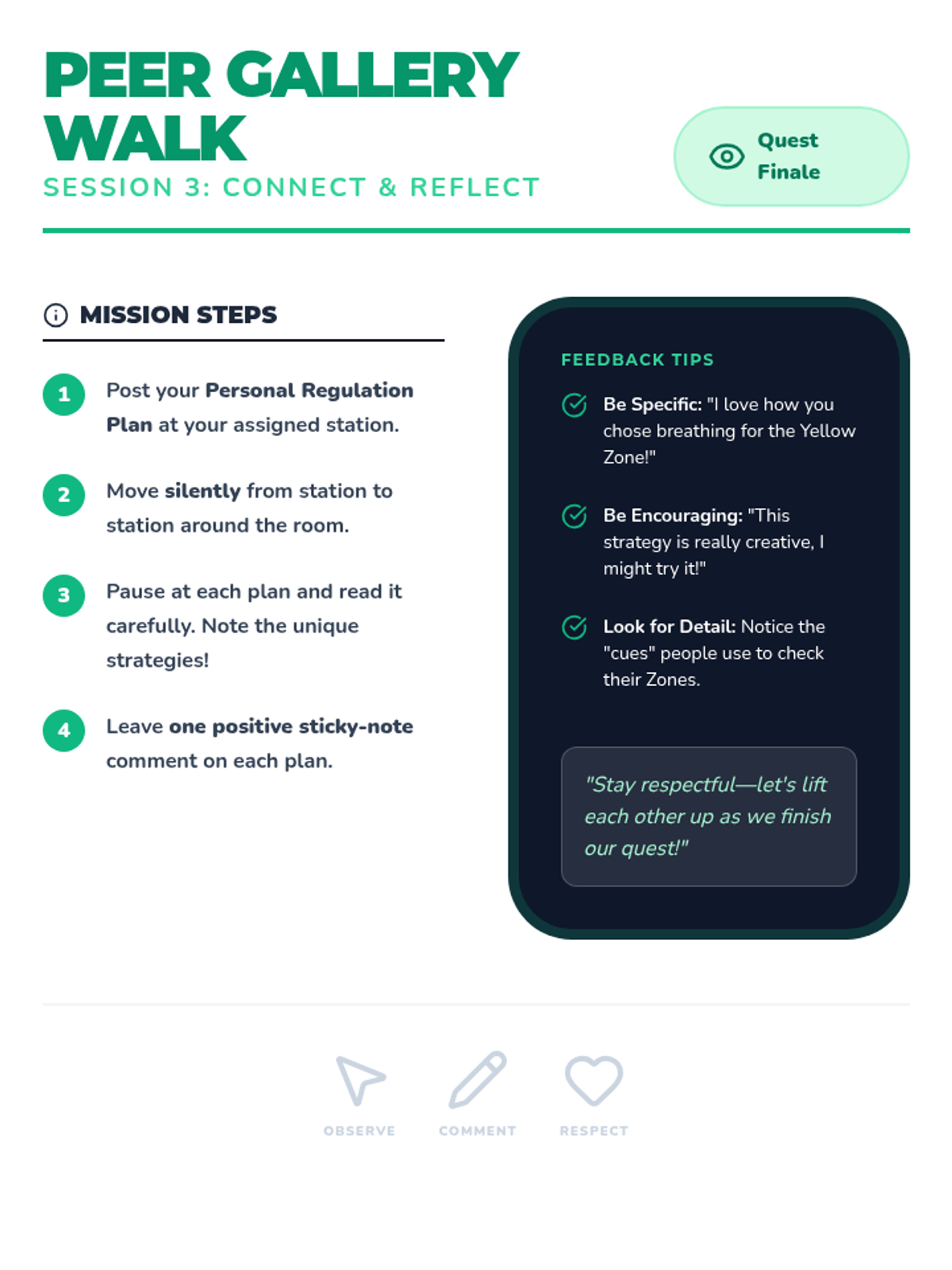 A 3-session Social-Emotional Learning sequence for middle schoolers to identify, understand, and manage emotions using the Zones of Regulation framework. Students move from basic identification to mastering specific self-regulation strategies and creating a personal action plan.