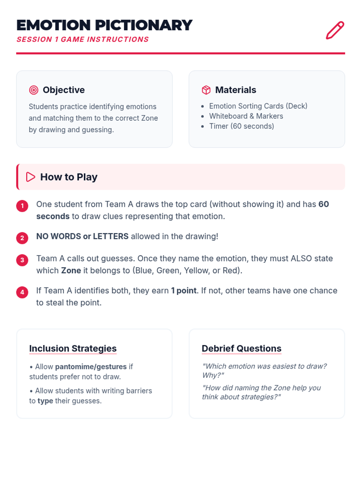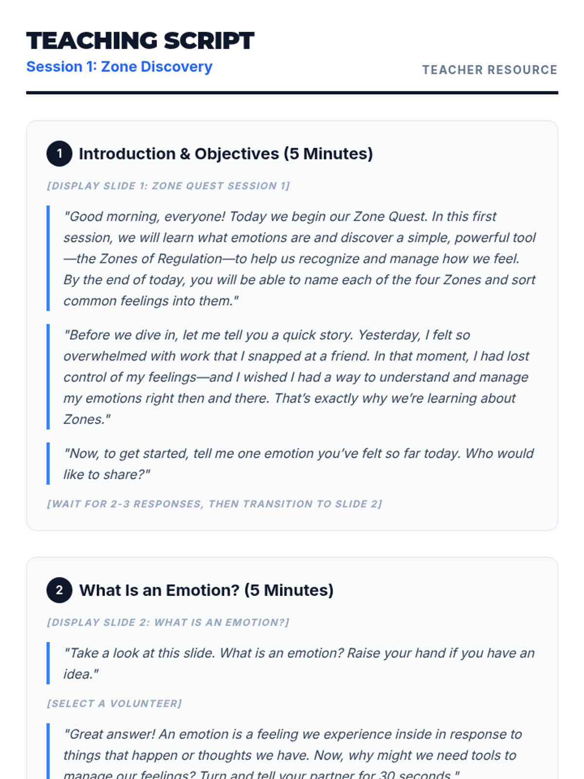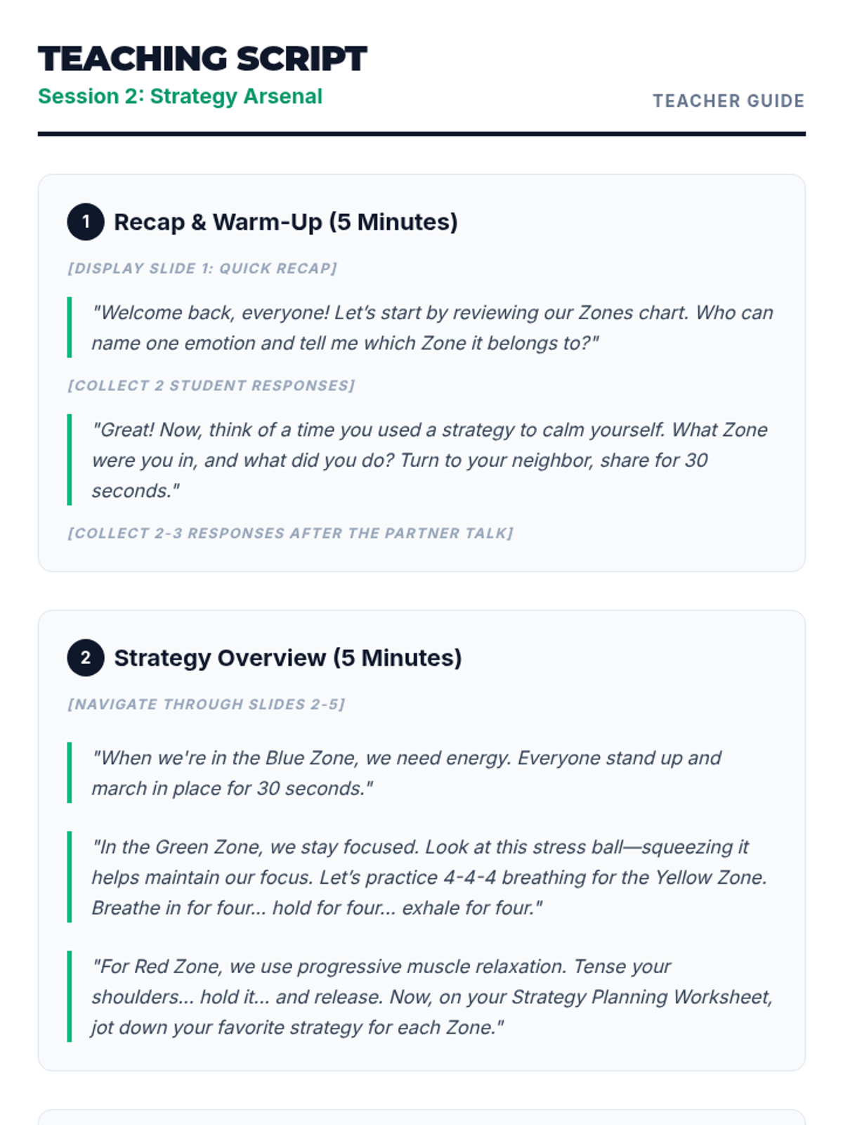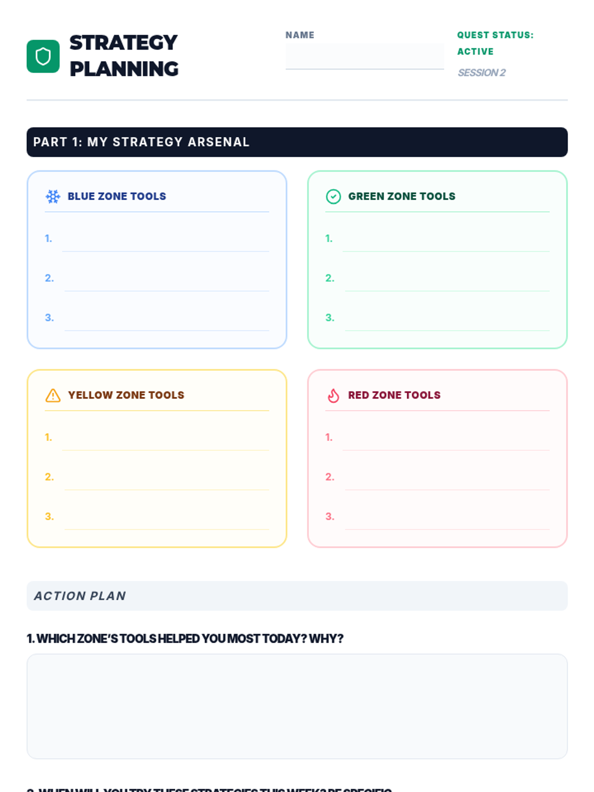 A 3-session course for middle schoolers to understand and master the Zones of Regulation. Students learn to identify emotions, develop a toolkit of self-regulation strategies, and create a personalized plan for emotional control.