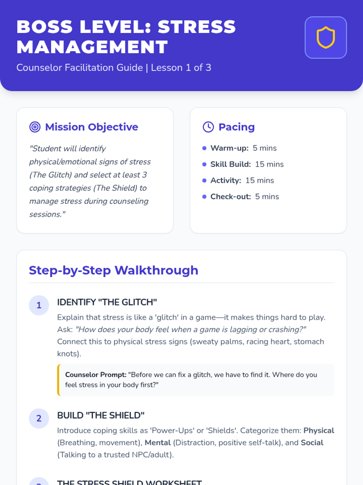 A 3-lesson counseling series for 6th graders to build coping skills for stress, peer conflict, and academic pressure using an engaging "Level Up" gamer theme. Each lesson provides specific strategies to help students manage symptoms of depression and navigate middle school challenges.
